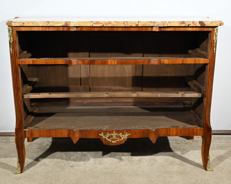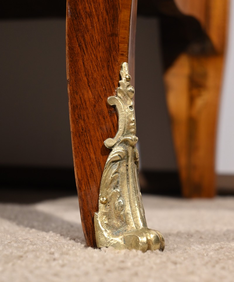 Les montants sont joliment mis en valeur par trois doubles filets de citronnier et d’amarante avec chutes et sabots bronze sur des pieds galbés.