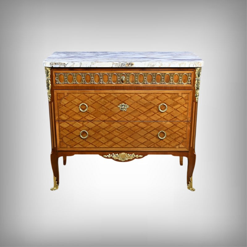 Commode Sauteuse en Marqueterie, style Transition Louis XV Louis XVI – Début XXe
