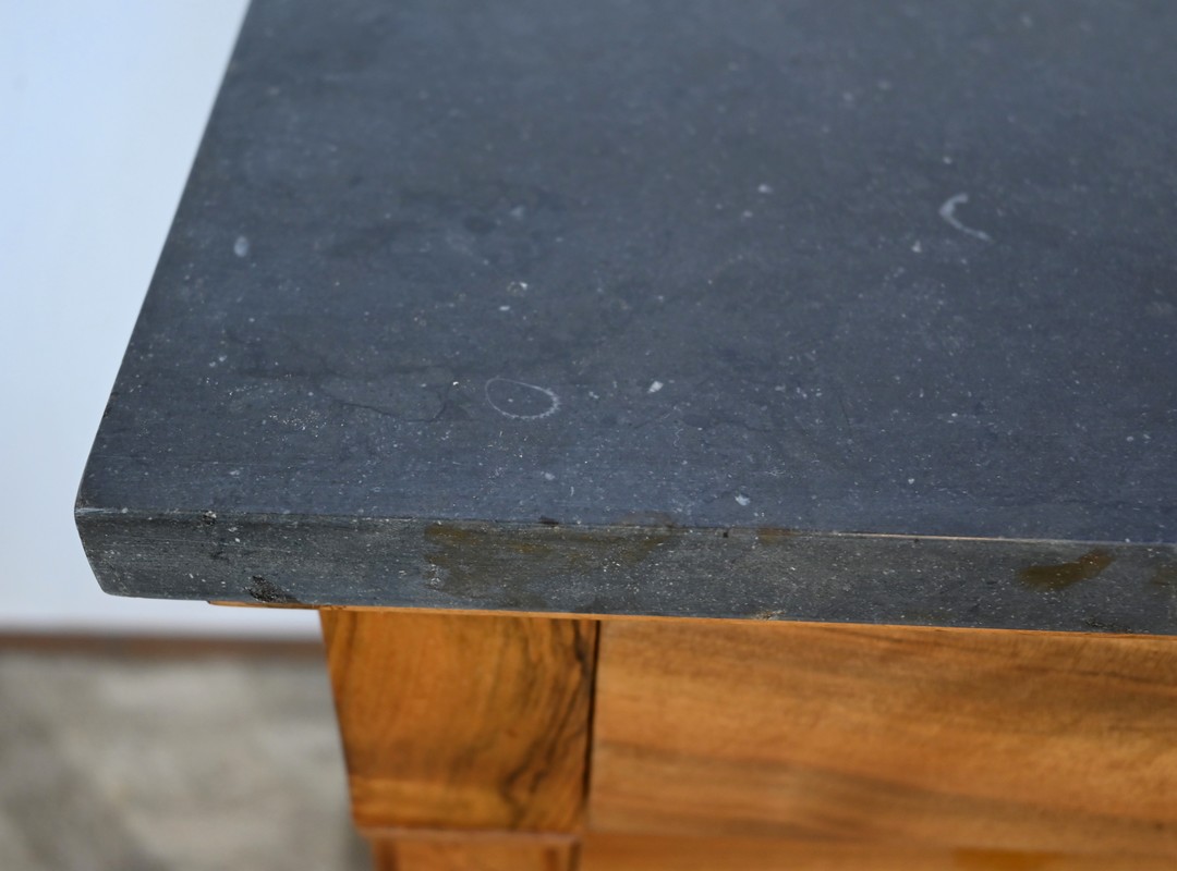 Ce meuble est sommé d’un marbre noir français d’origine.