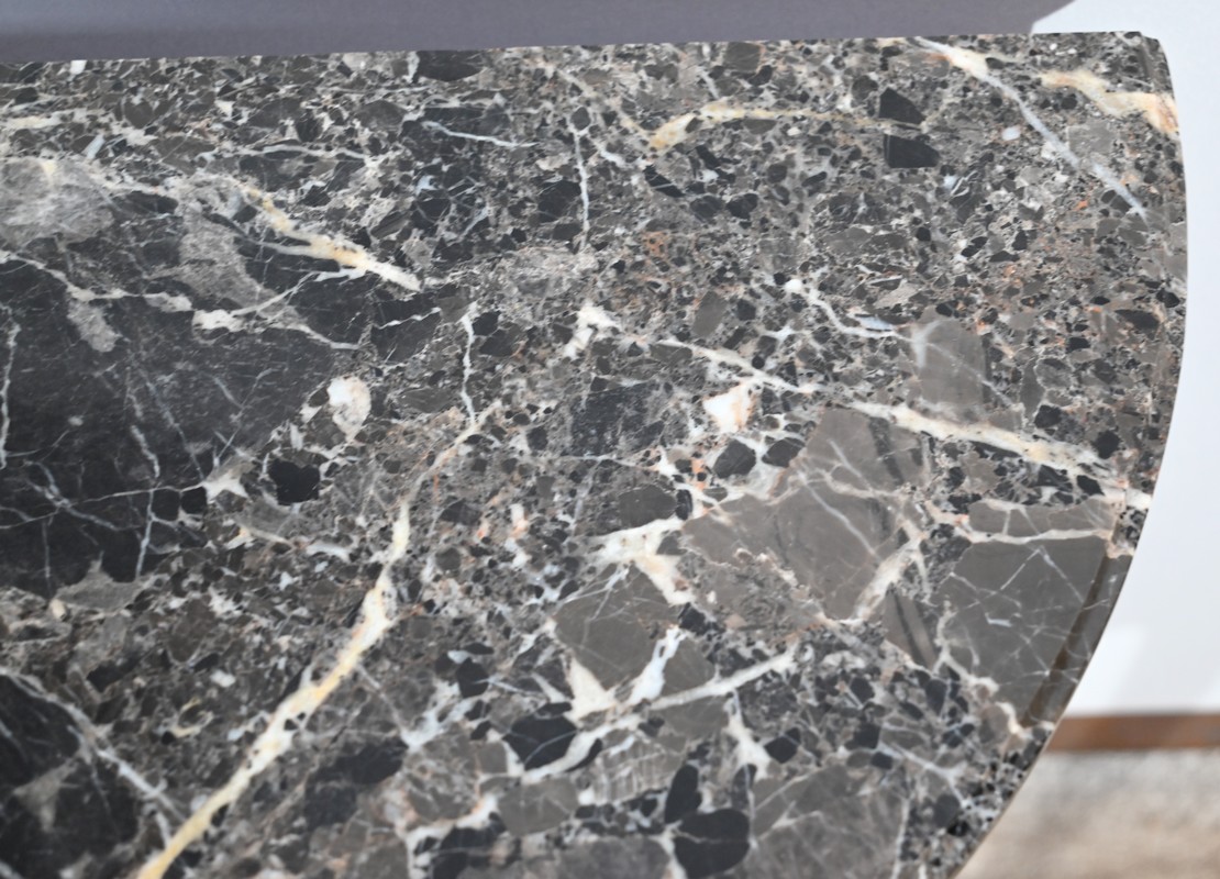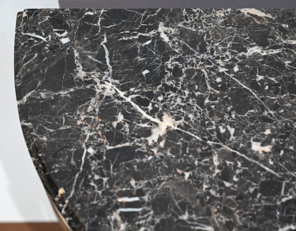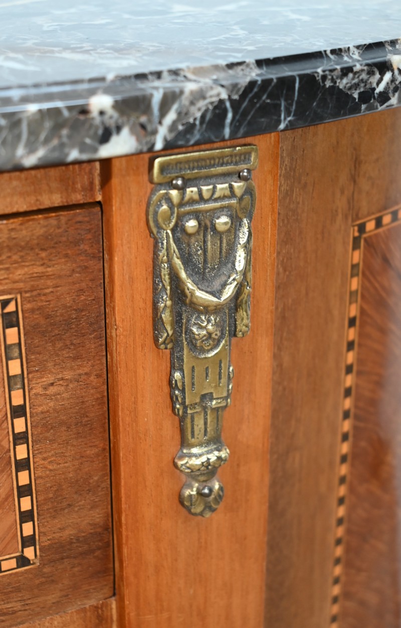 Ce meuble est chapeauté d’un marbre Sainte-Anne à gorge.