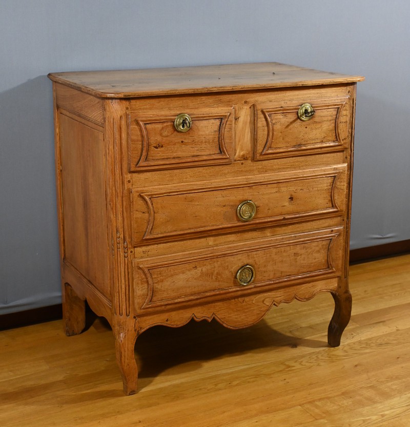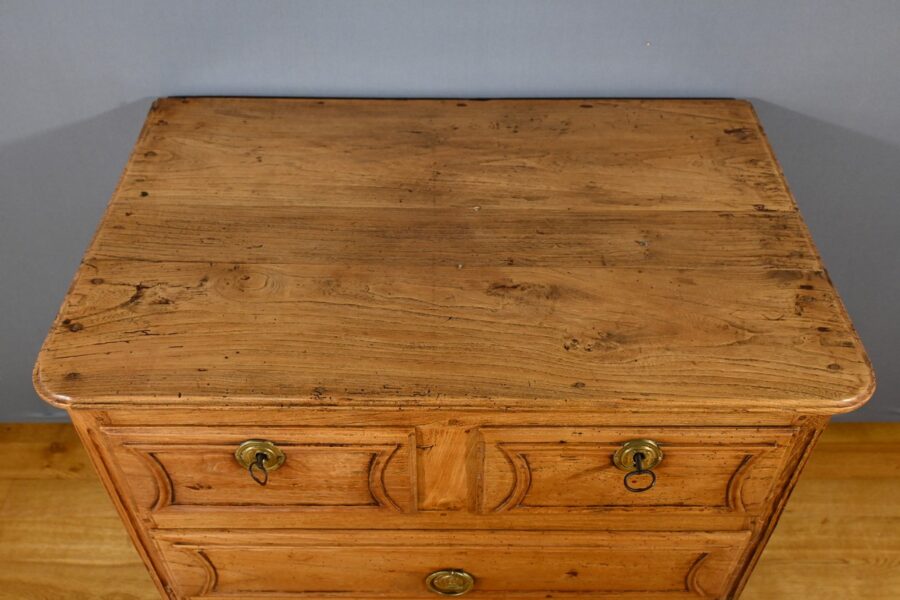 Cette petite commode transition Louis XIV/Louis XV en frêne, datant de la fin du XVIIIe et provenant de la région poitevine, est une pièce de mobilier exceptionnelle qui allie élégance et fonctionnalité.
