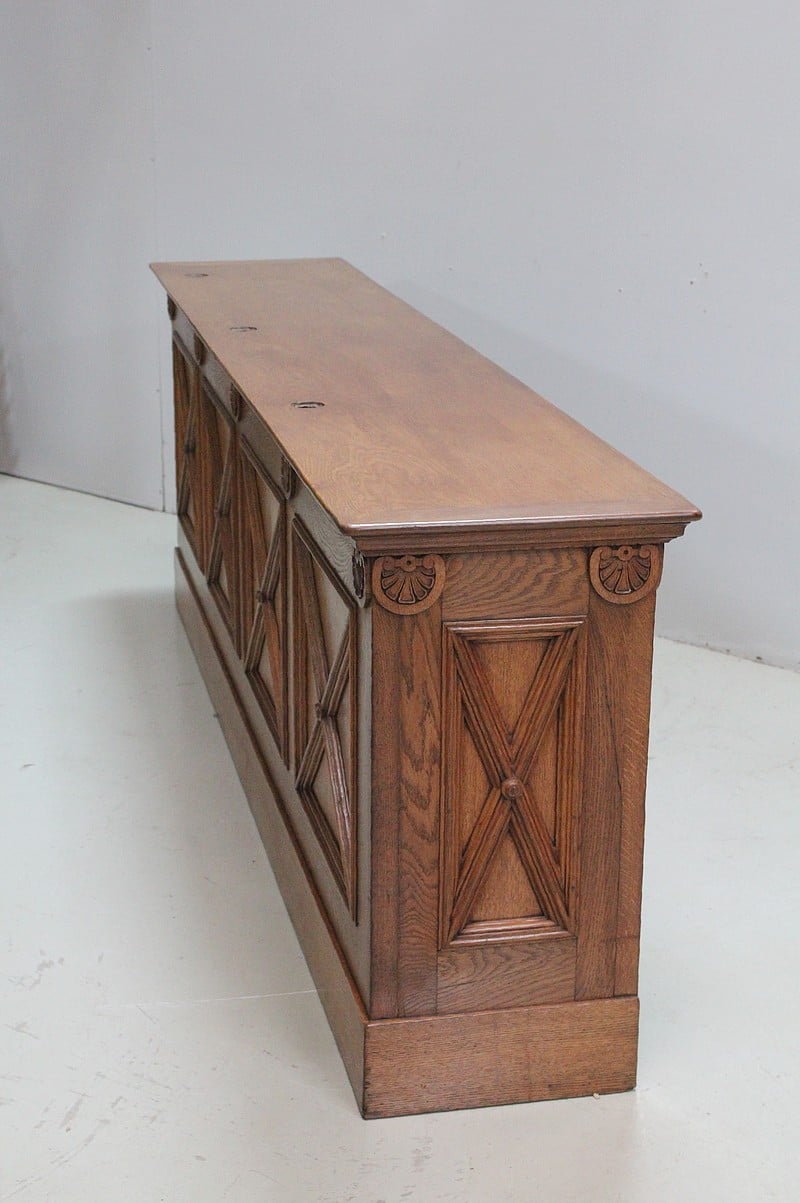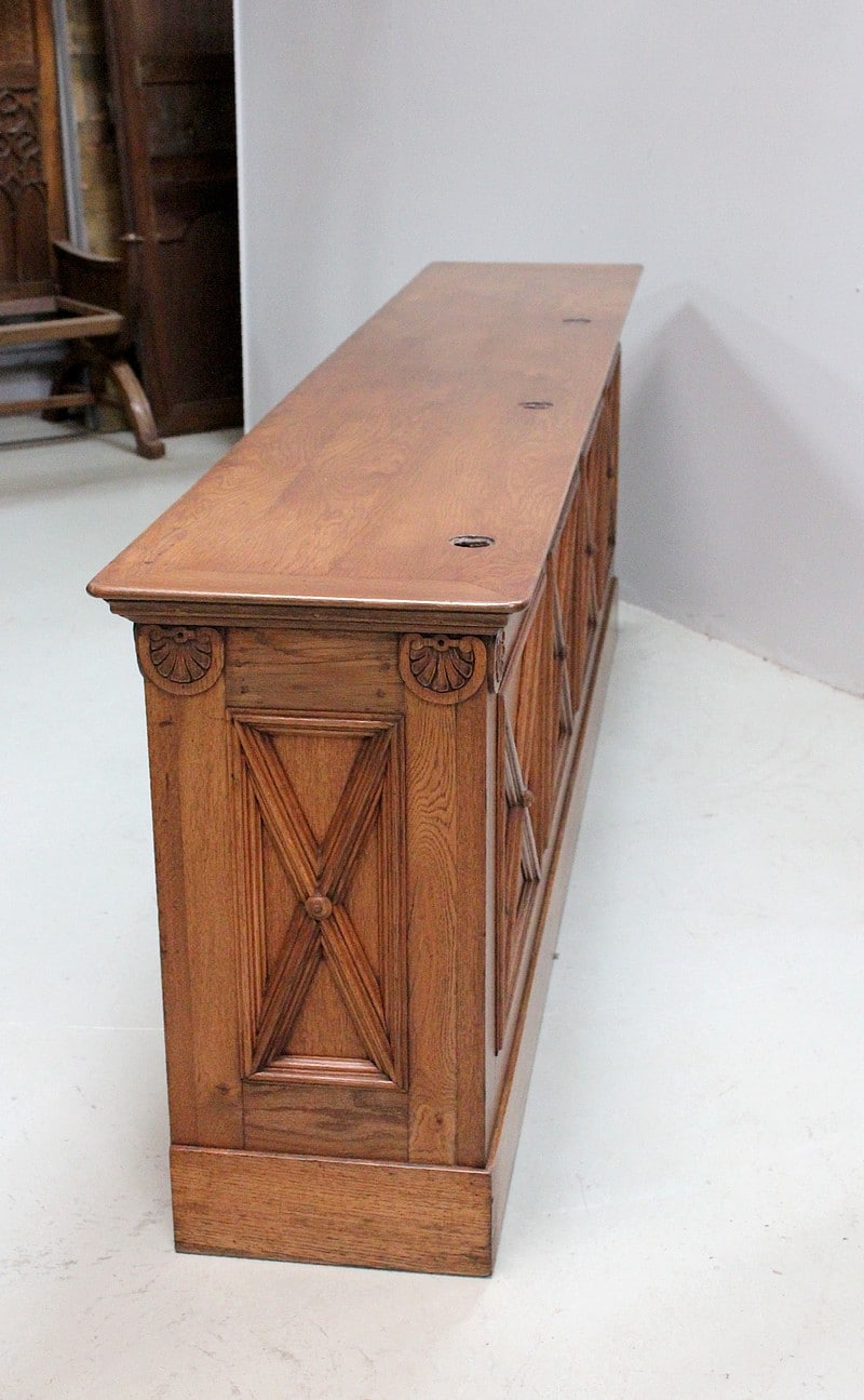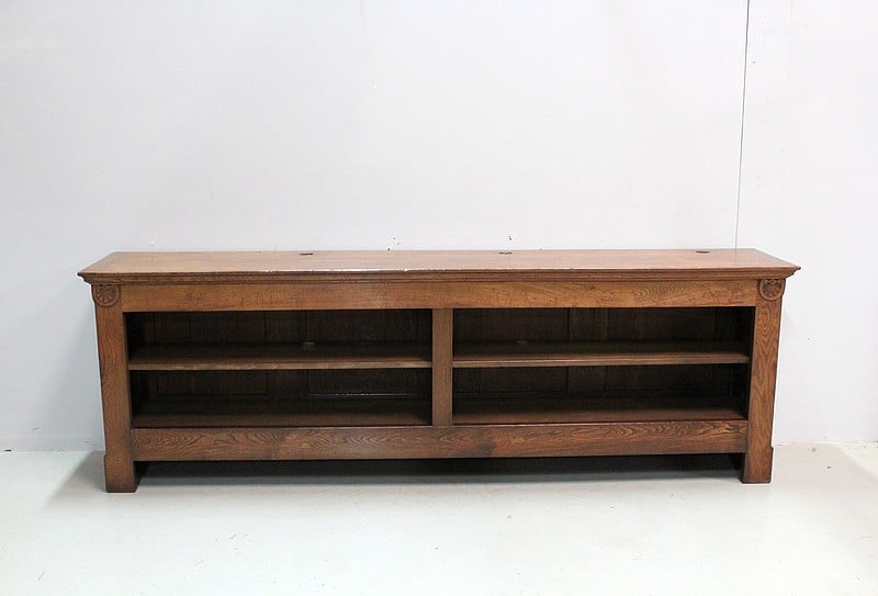 Banque de tribunal dans le goût Gothique en Chêne massif.