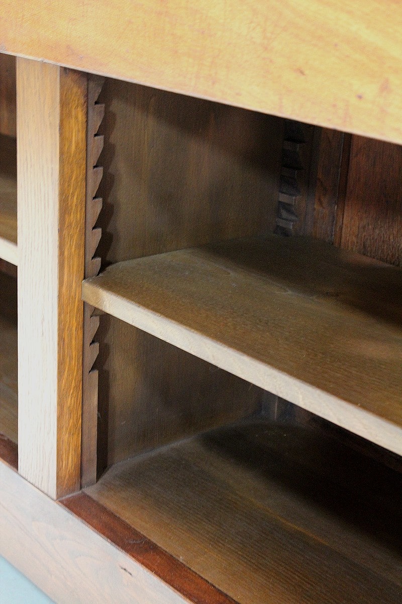 L’autre face découvre 2 grandes niches chacune dotée d’une épaisse étagère réglable sur crémaillères.