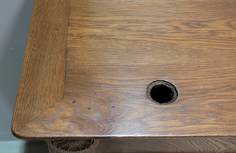 Son plateau du dessus est doté de 3 emplacements pour encriers.