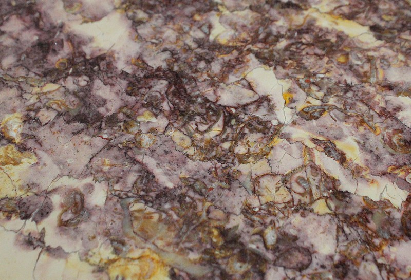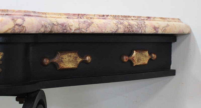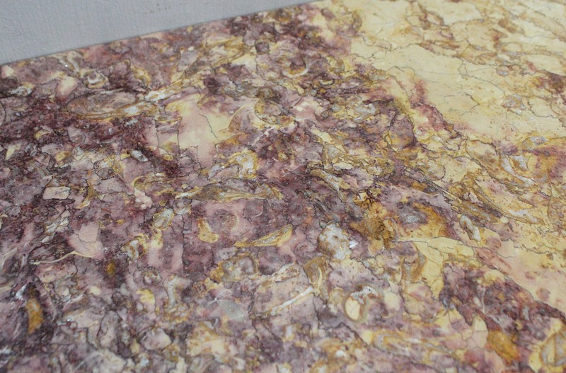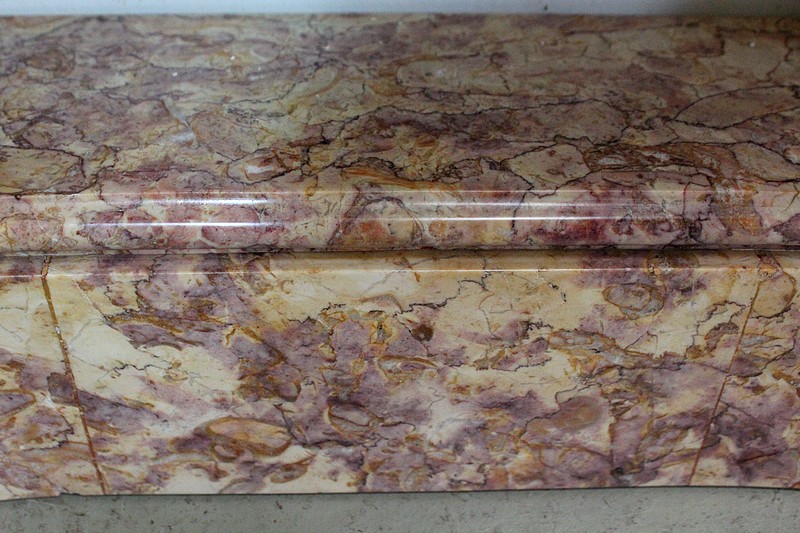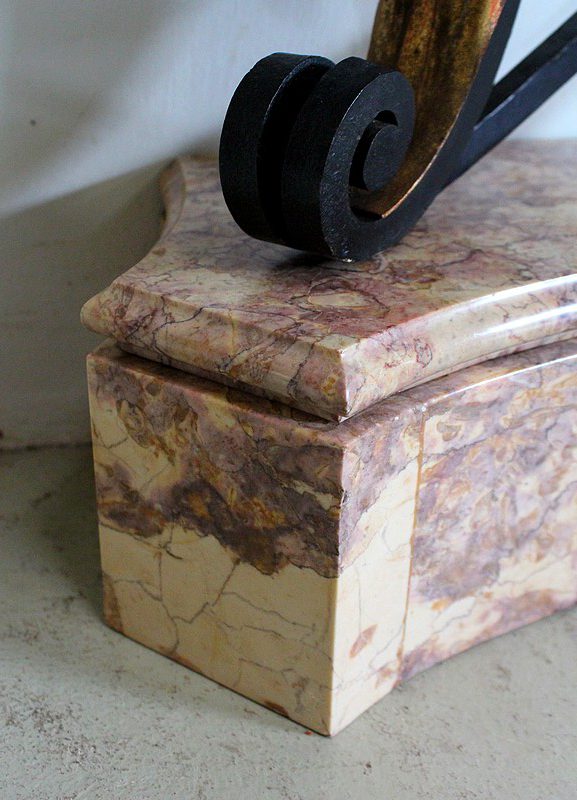 Longue Console d’Applique, avec dessus Marbre aux tons Violine et Ocre.
