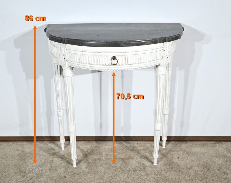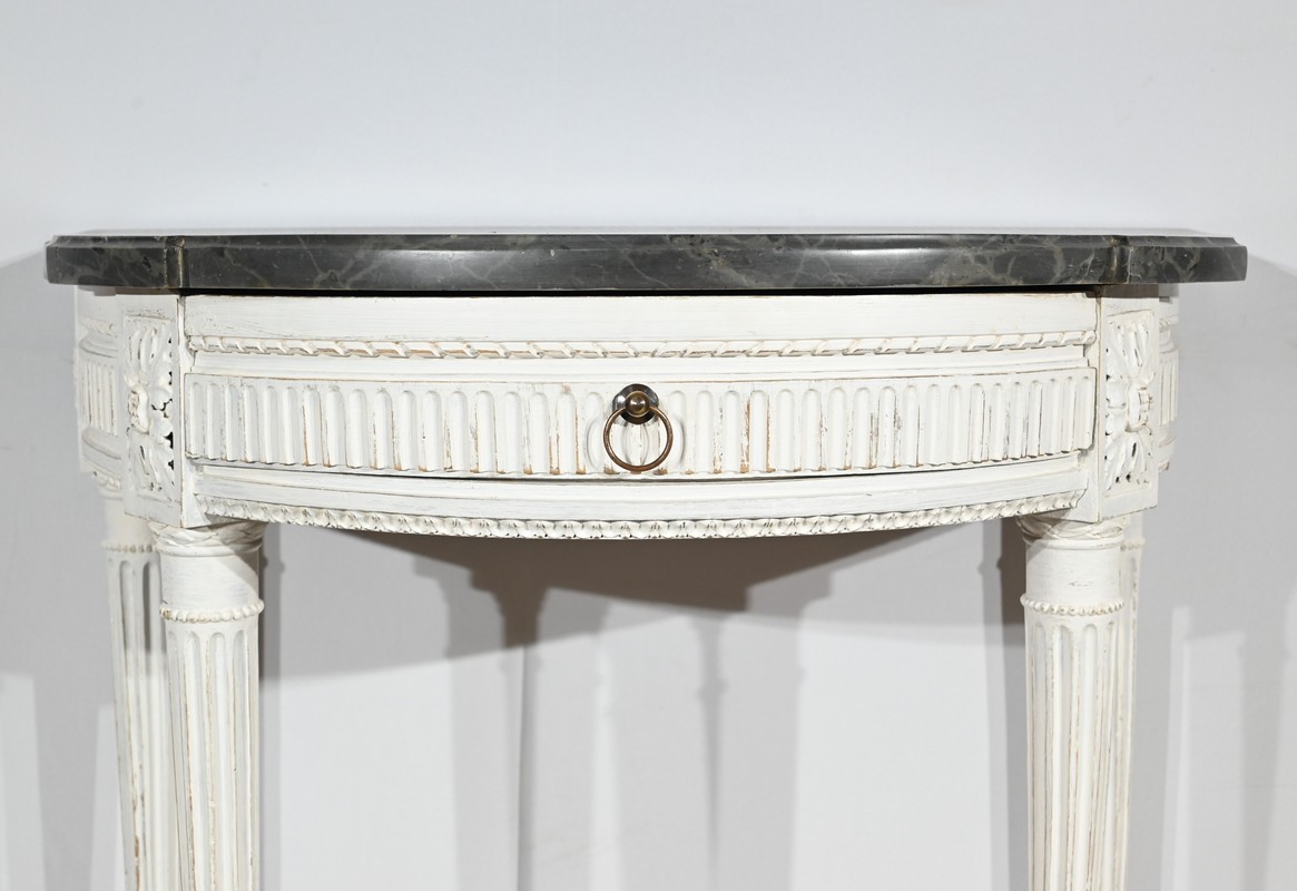 Élégante et décorative, cette console demi-lune valorisera vos vases, bronzes ou autres objets de valeur tout en vous permettant d’entreposer vos affaires dans son tiroir de bonne capacité.