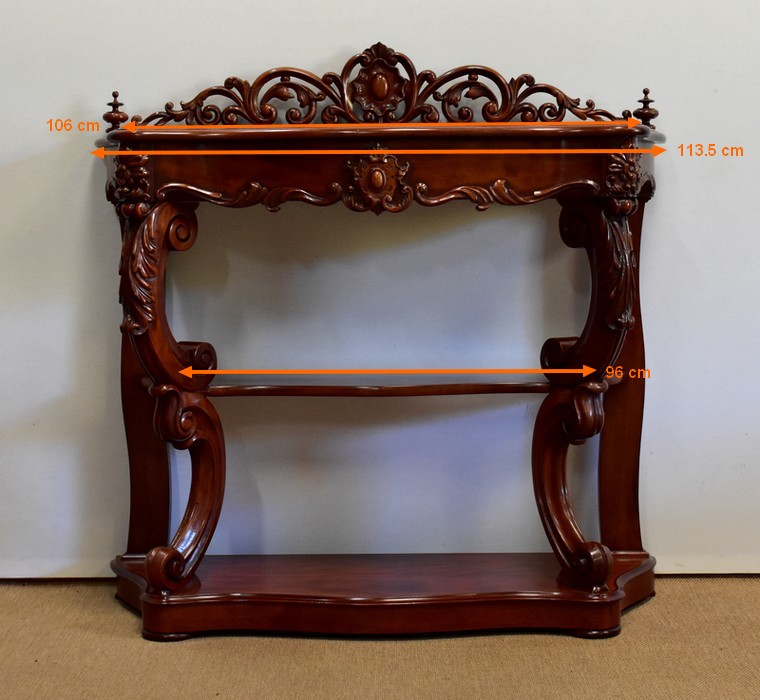 Console Desserte d’époque Napoléon III, en Acajou massif, et placage d’Acajou.