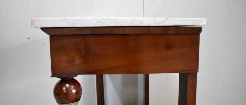Excellent état après restauration dans notre atelier. Finition uniquement cirée. Marbre poli et lustré.