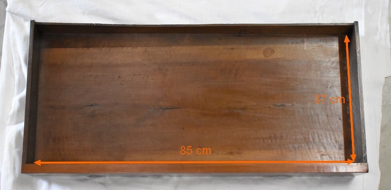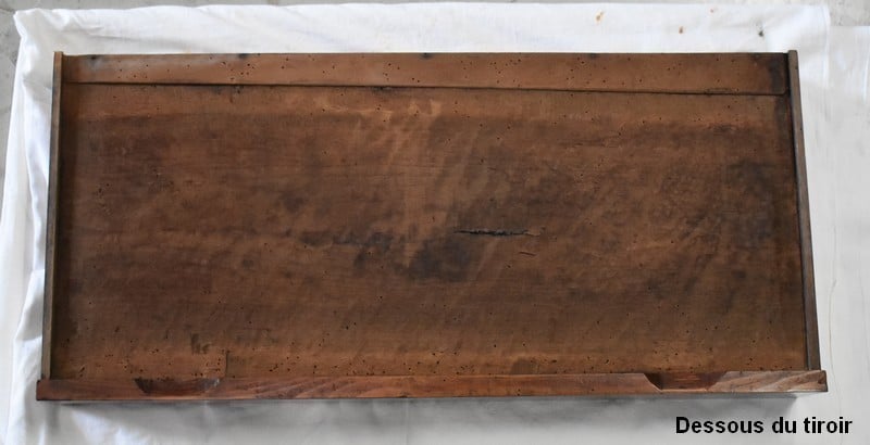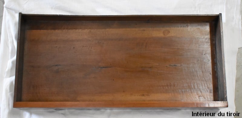 L’intérieur de ce tiroir assemblé en Queues d’Aronde est en Noyer.