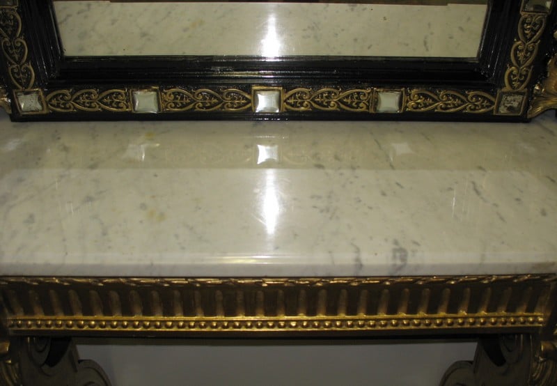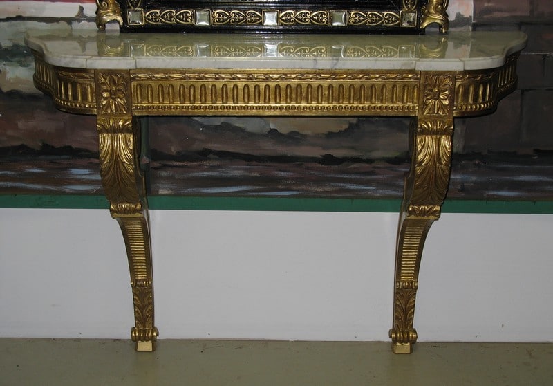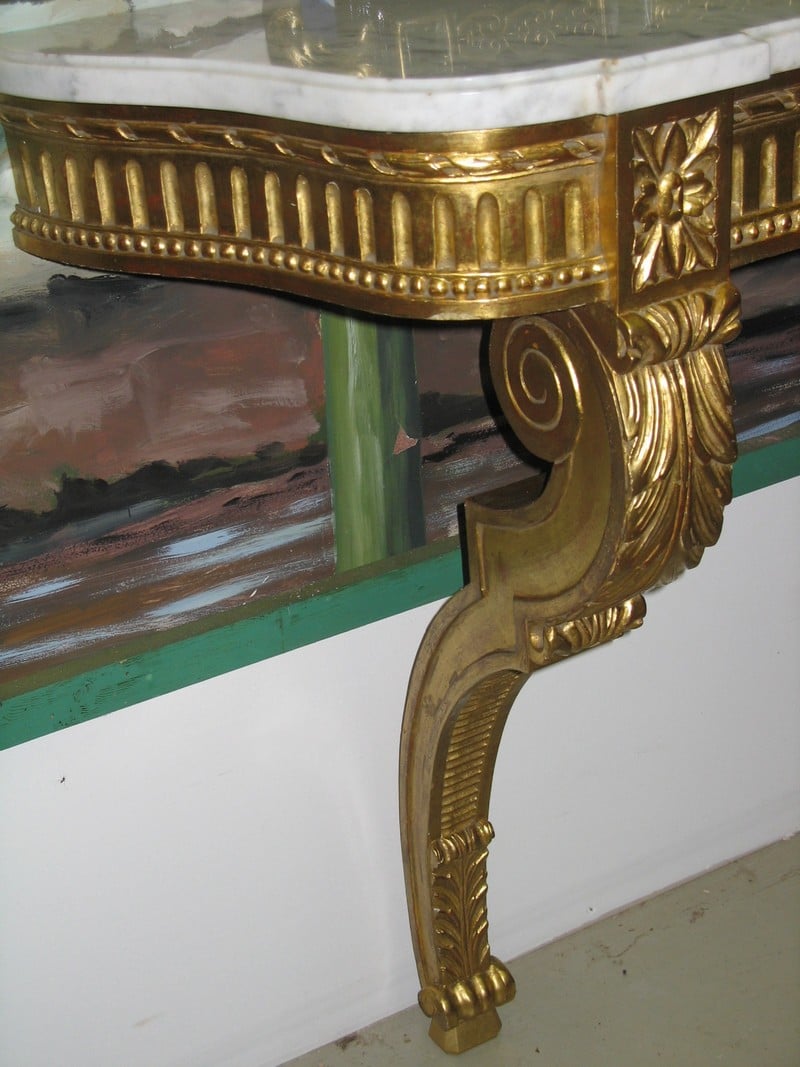 Console en bois doré dans le goût Louis XVI. Dessus en marbre blanc.