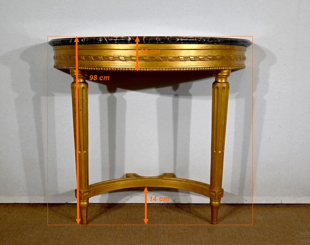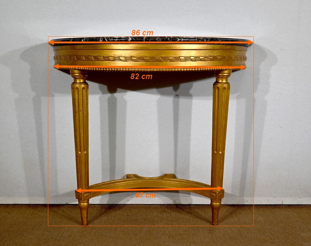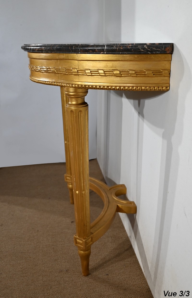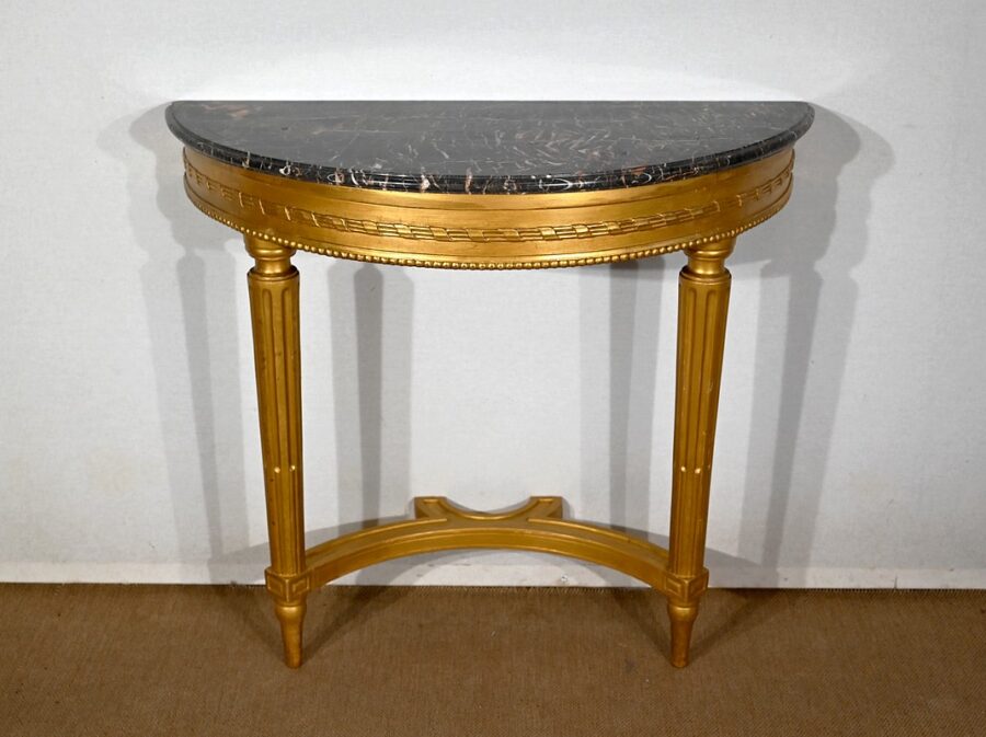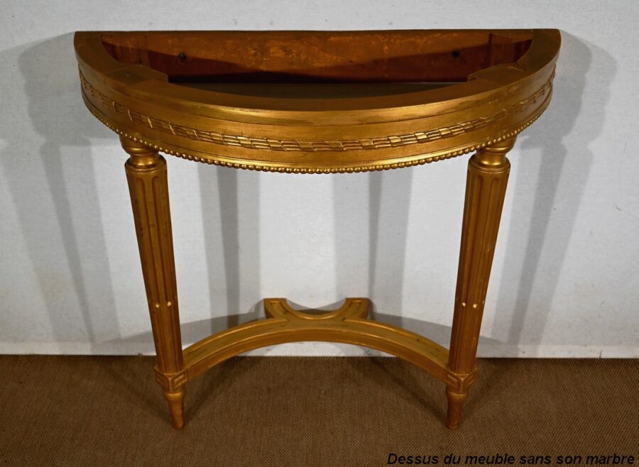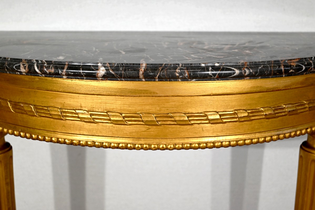 Cette console d’applique demi-lune possède le charme du mobilier Louis XVI et des proportions idéales.