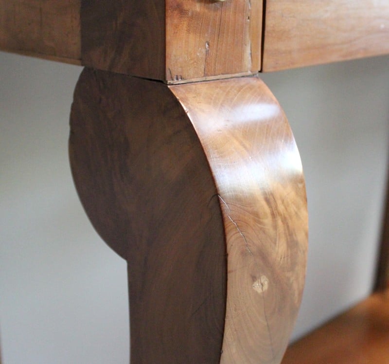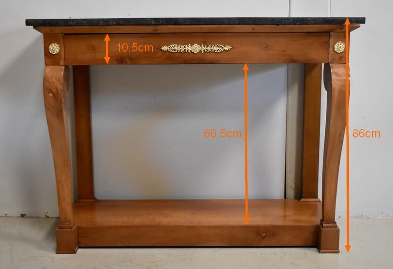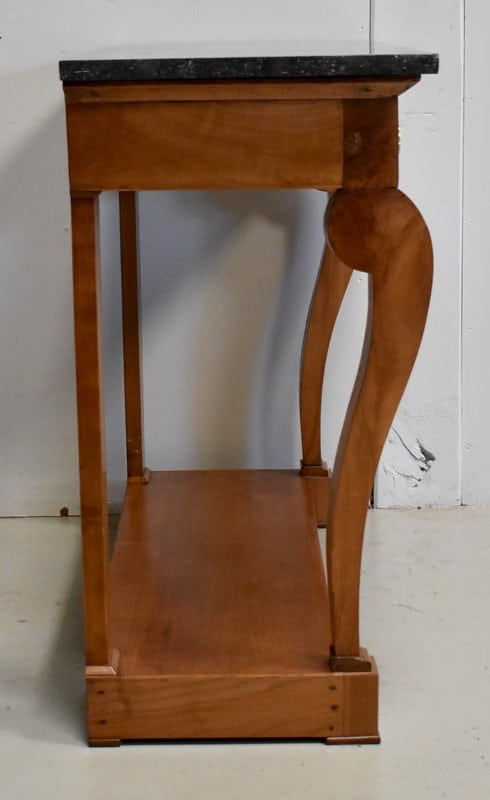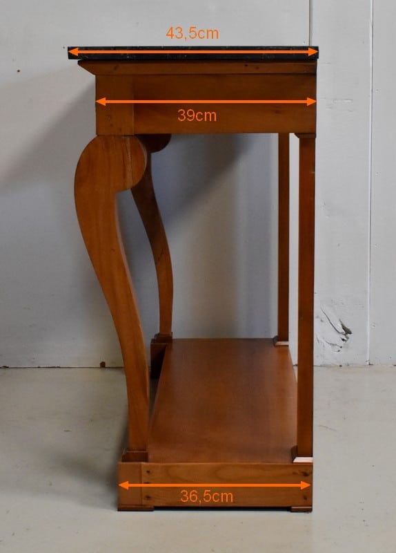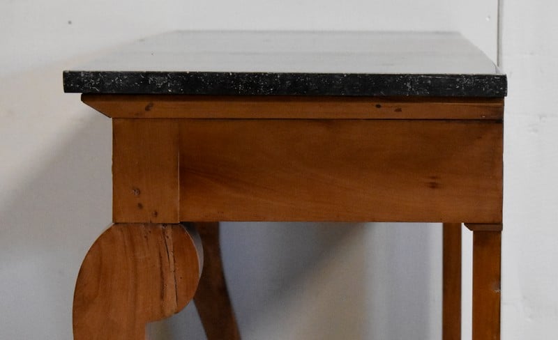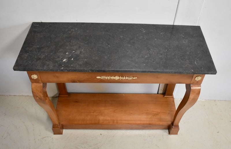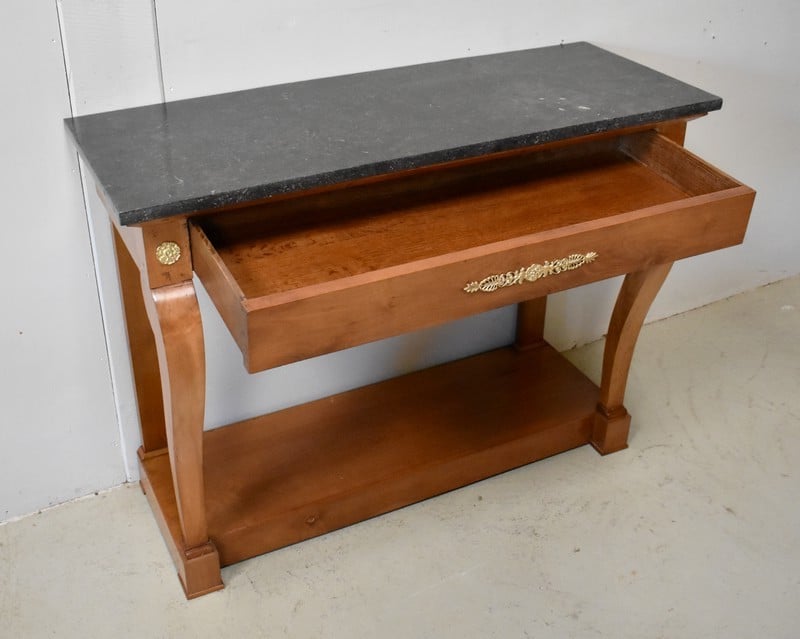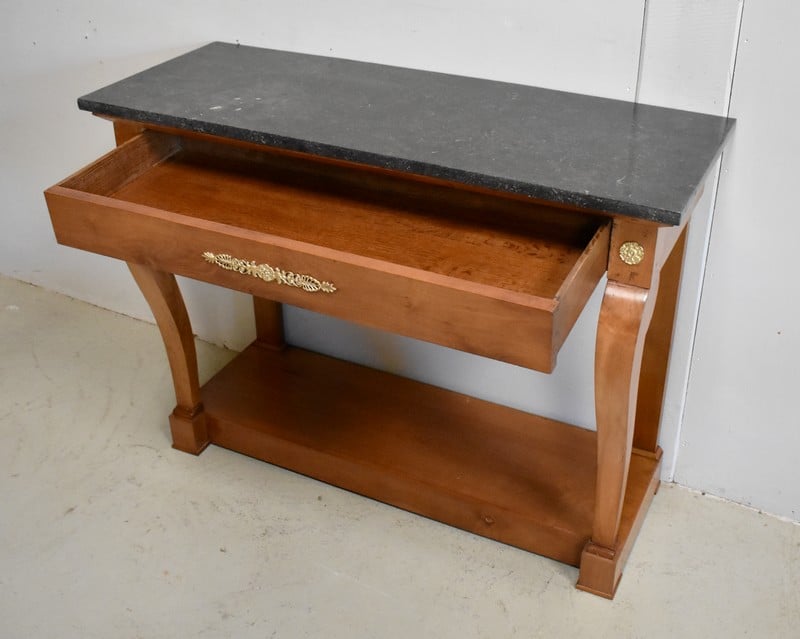 Console en Merisier massif, avec dessus en Marbre Granité à dominante Noire.