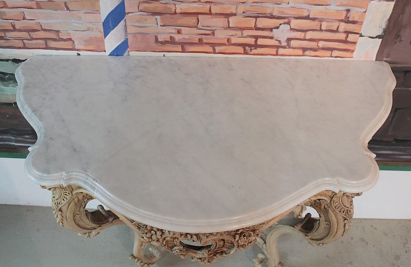 Très bon état après restauration et décapage dans notre atelier. Réparation sur le marbre (voir photo).