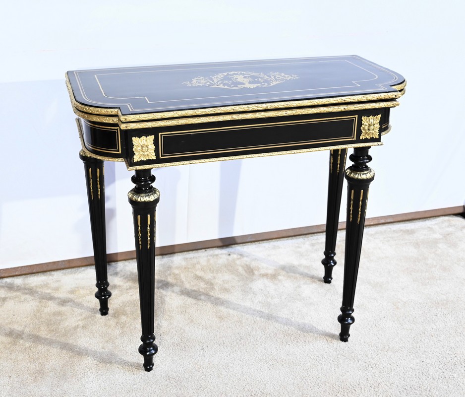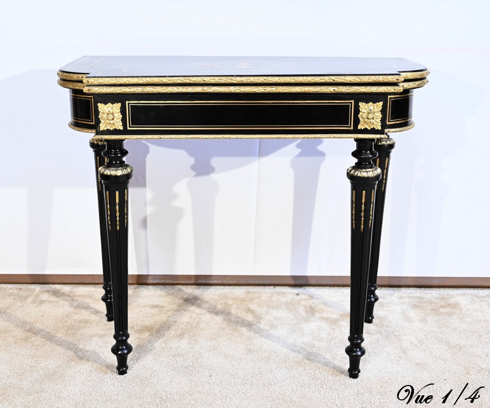 Console Table de Jeux Napoléon III, en bois noirci, datant de la moitié du XIXe siècle.