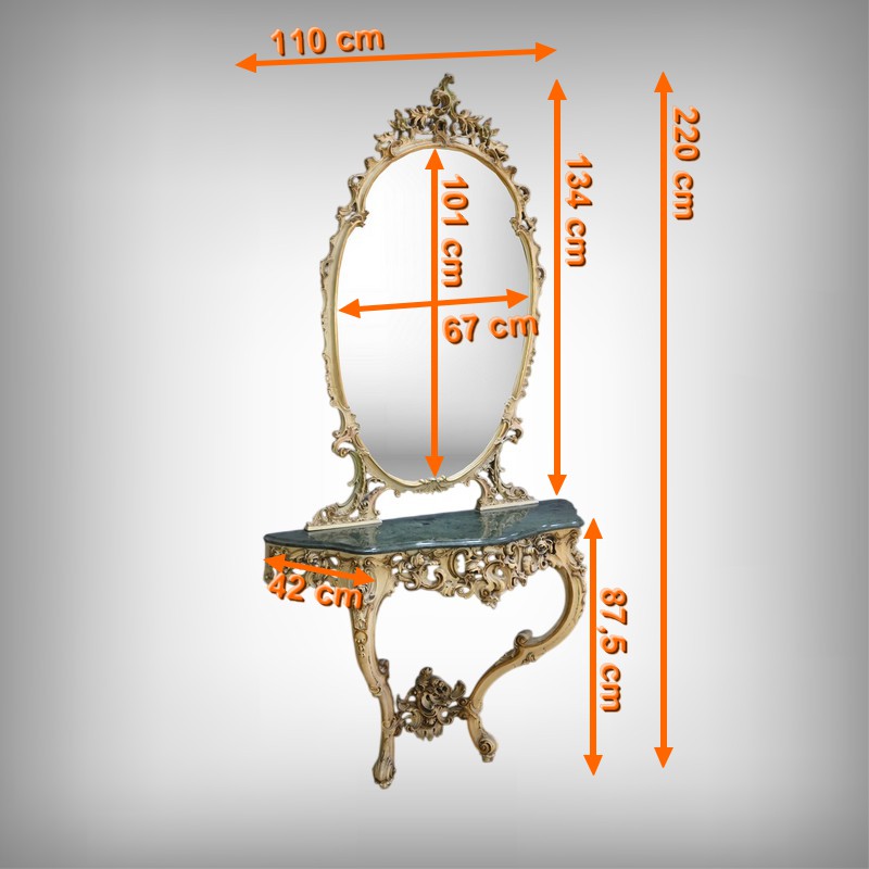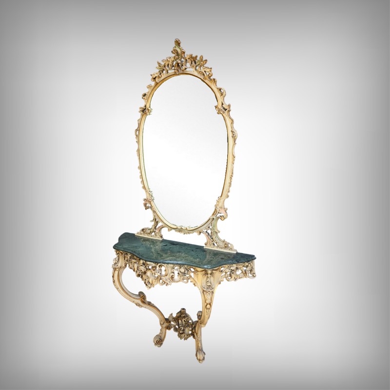 Ensemble Console-Miroir en Bois peint – XXe