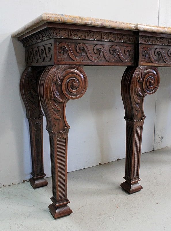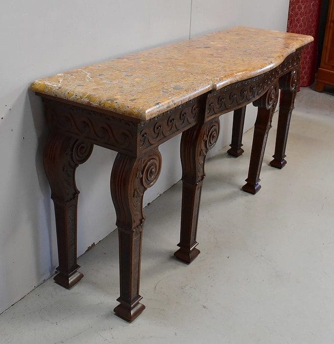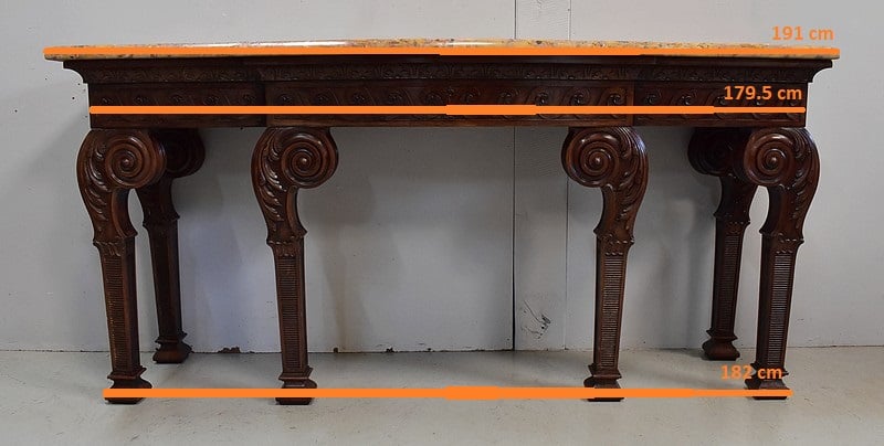 Grande Console en Acajou massif et dessus Marbre, style Louis XVI – Fin XIXe