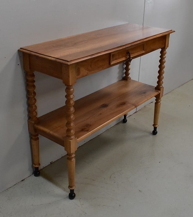 Haute Console ou Desserte en Noyer Blond massif, d’époque Louis Philippe.