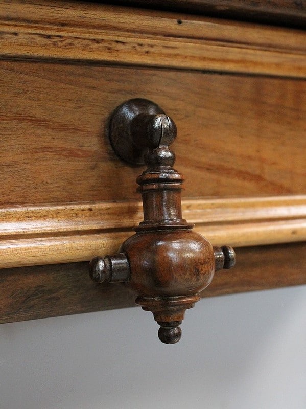 Elle ouvre en ceinture par un tiroir central de 7 cm de profondeur avec pendentif de tirage en Bois ouvragé.