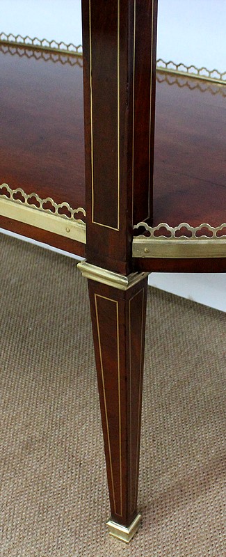 Ce Mobilier bénéficie d’une Tablette en Acajou agrémentée dans son pourtour d’une Galerie Laiton finement travaillée dans sa partie supérieure.
