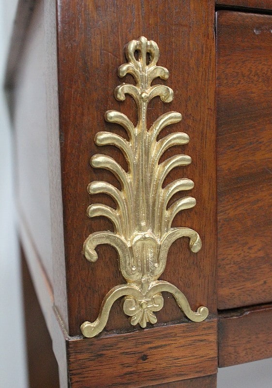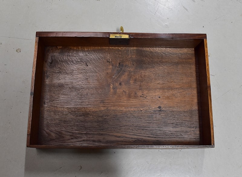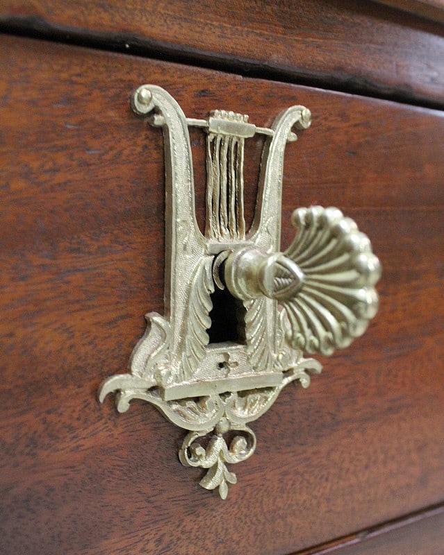 L’abattant ainsi que le tiroir sont dotées d’entrées de serrures en Bronze ouvragé et chacun dispose de sa clé.