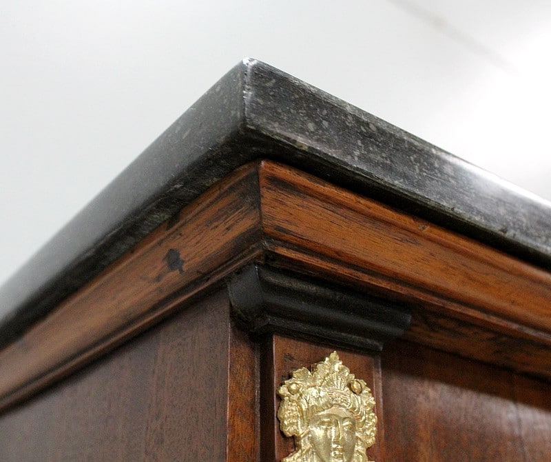 Parfait état après restauration dans notre atelier. Finition uniquement cirée. Marbre lustré et poli.