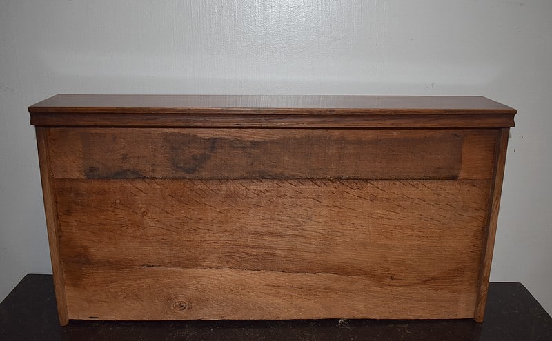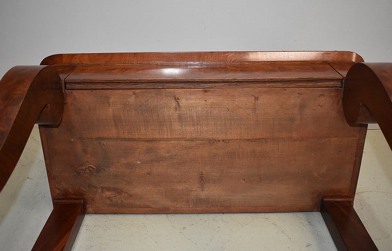 Elle ouvre par un tiroir dans la ceinture (intérieur en chêne).