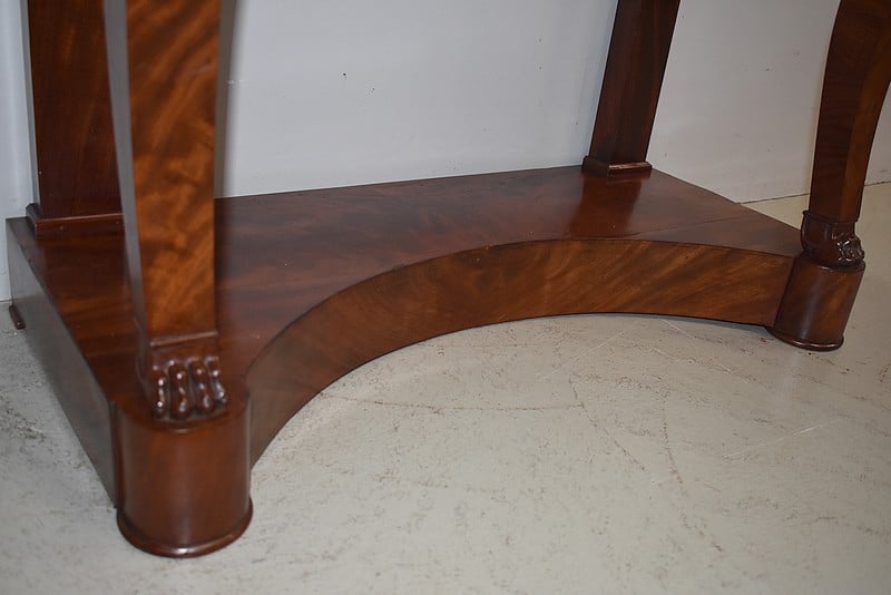 Les deux pieds avants sont galbés et terminés par des griffes de lion tandis que ceux de l’ arrière sont droits et plats , ils reposent sur une plinthe de forme concave.