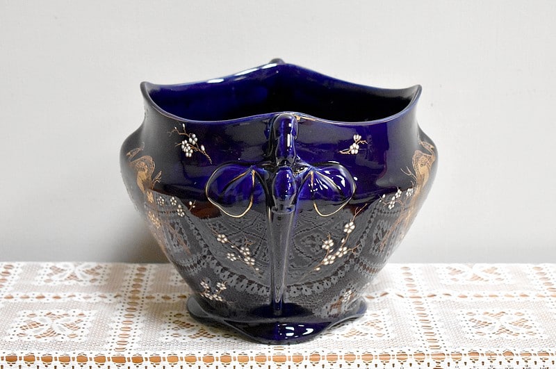 Cache-pot en faïence de LUNEVILLE, Keller et Guérin de forme ondulée.