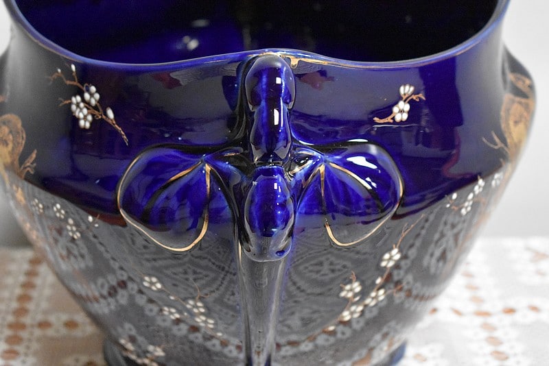 Il est doté sur ses côtés de deux poignées en forme de fleurs.