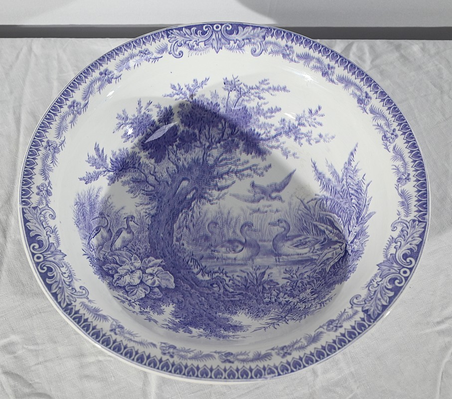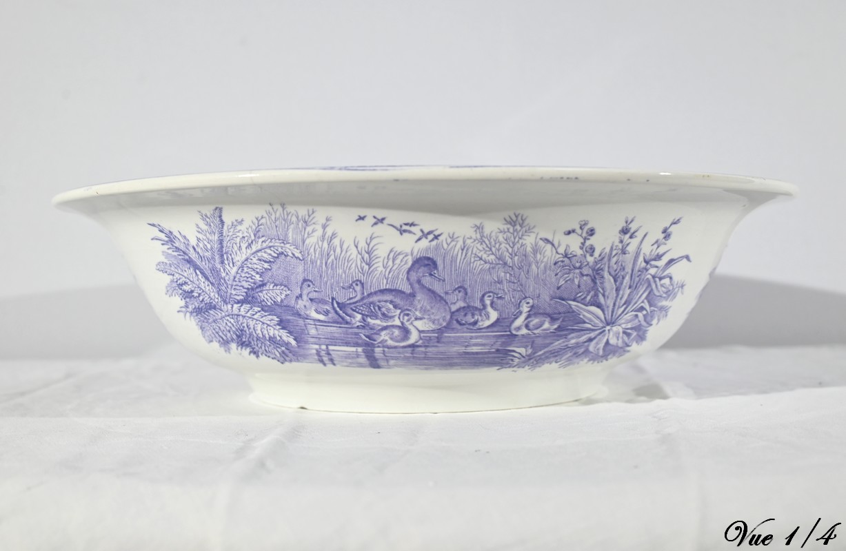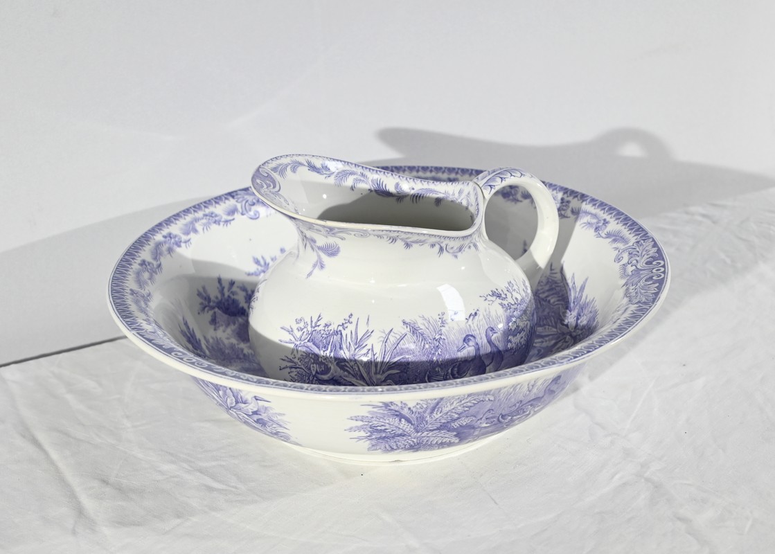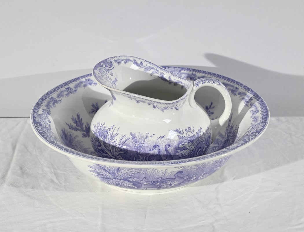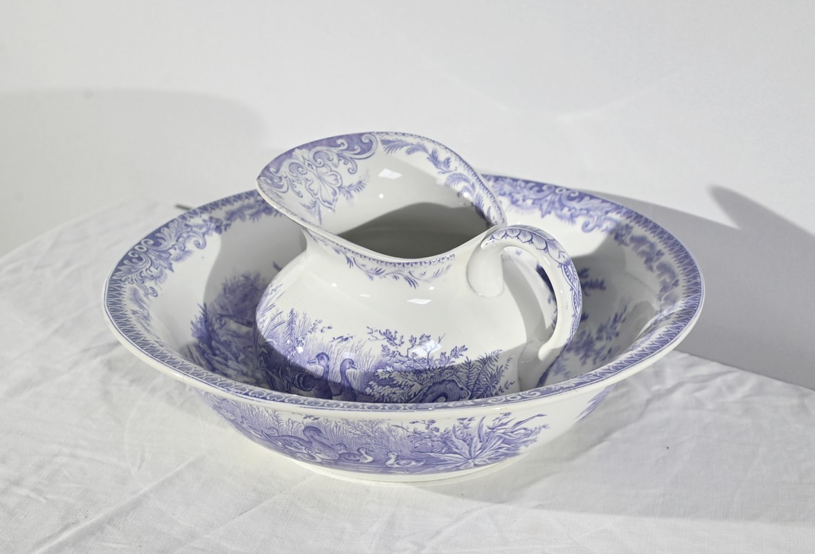 Cet ensemble est composé d’une vasque et d’un broc à décors de canards.