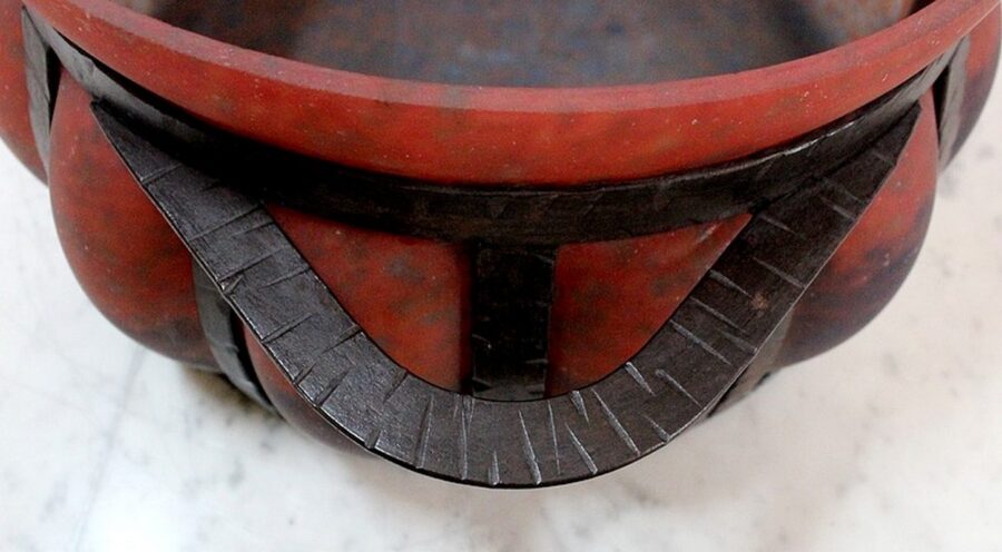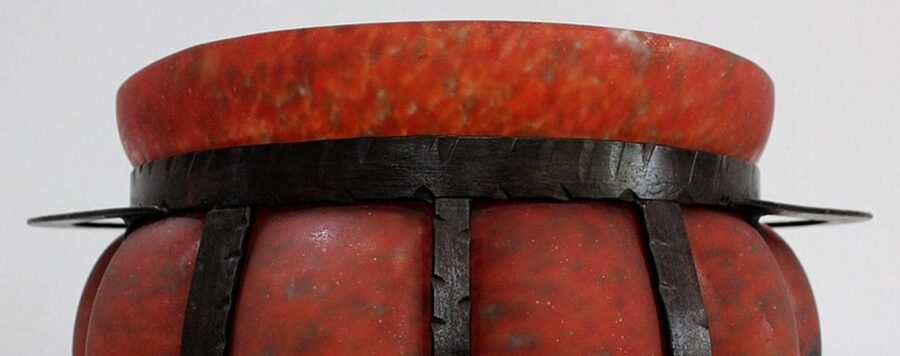 Coupe en Verre Marmoréen soufflée dans une Monture en Fer Forgé, signée Daum et Majorelle.