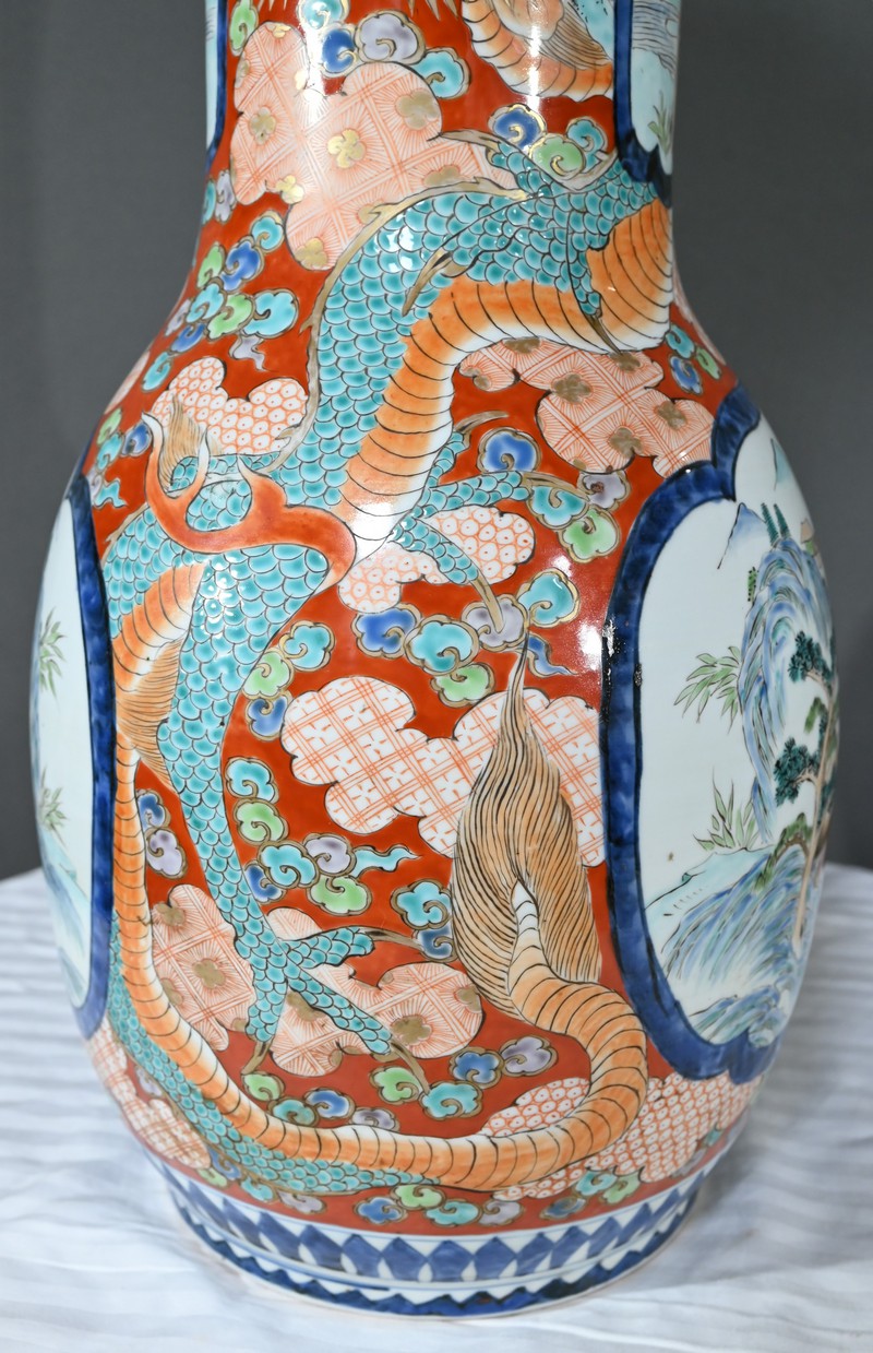 Ce grand vase Arita, en porcelaine, de l’ère Meiji est un exemple remarquable de l’artisanat japonais du XIXe siècle.