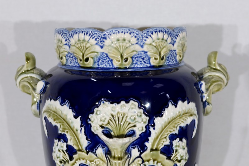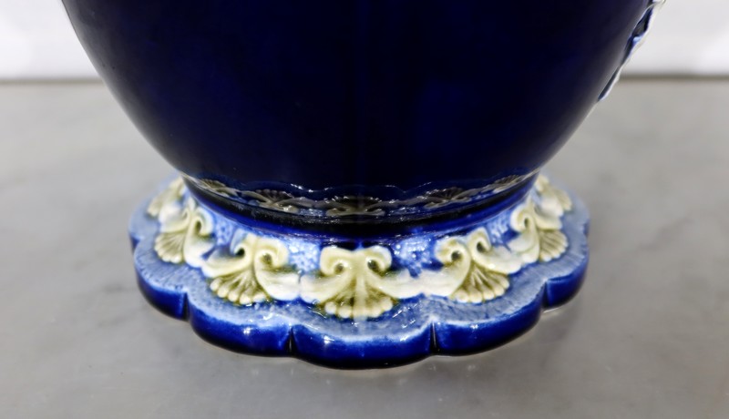 Ce Vase aux dimensions conséquentes, vestige d’un savoir-faire français aujourd’hui disparu, plaira par ses teintes profondes et ses ornements harmonieux.