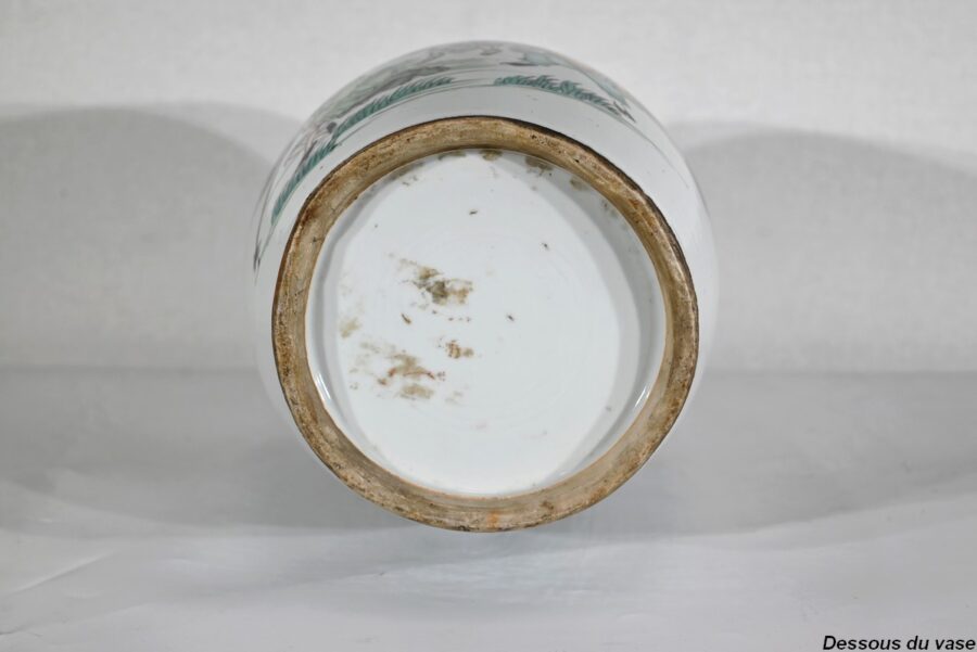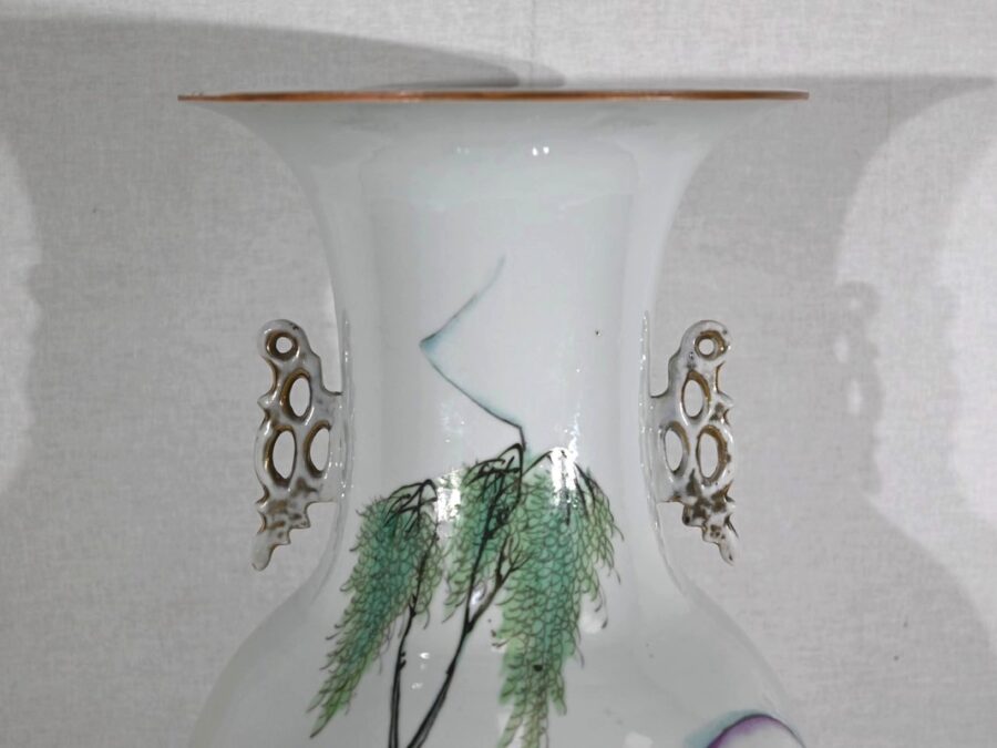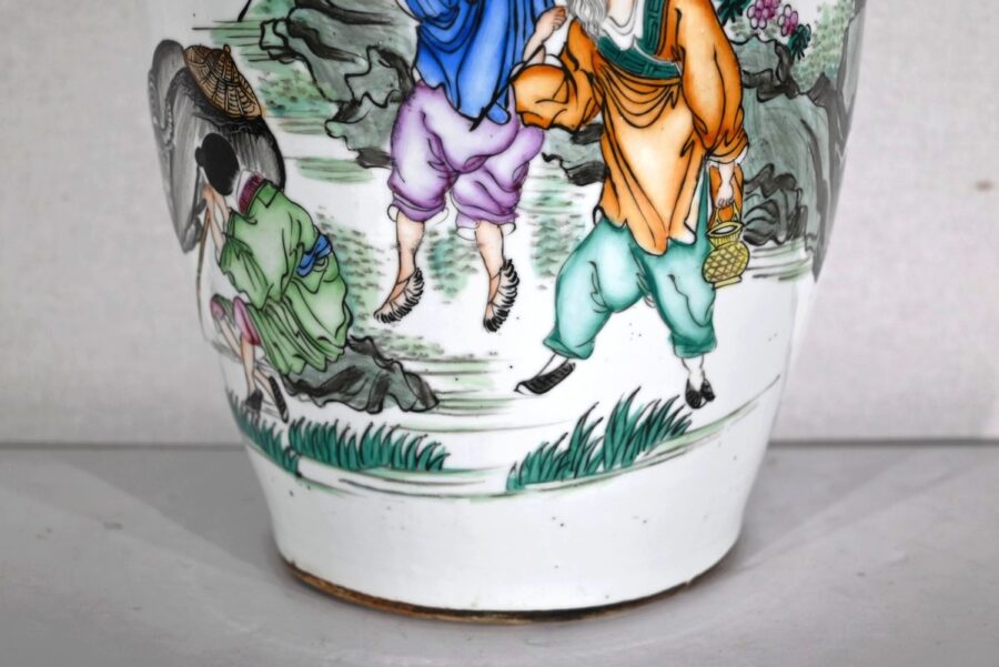 Important vase en porcelaine à col évasé, dont la partie pansue est décorée d’une scène de vie champêtre.
