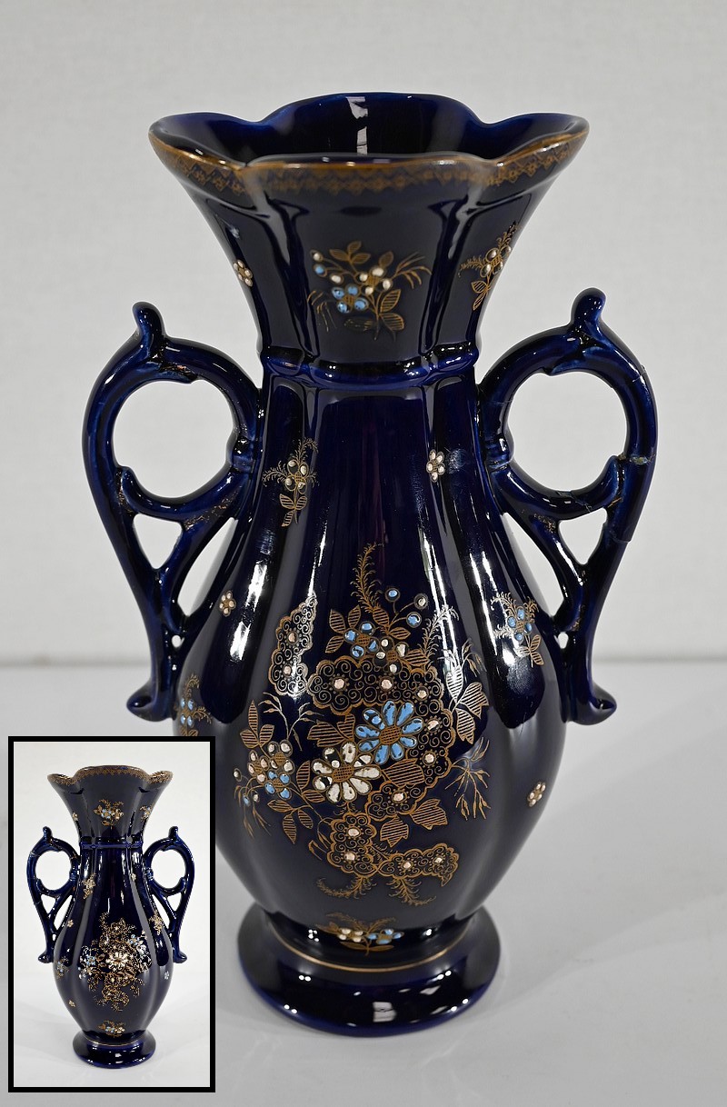 Au col, des anses en forme de chiens de Fô et sur les épaules des chimères dorées ornent chaque vase.
