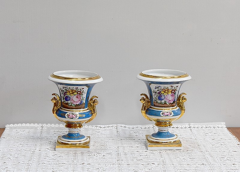 Harmonieux et Délicats, ces deux vases assortis attirent le regard par leur esprit printanier et la profondeur de leurs coloris.