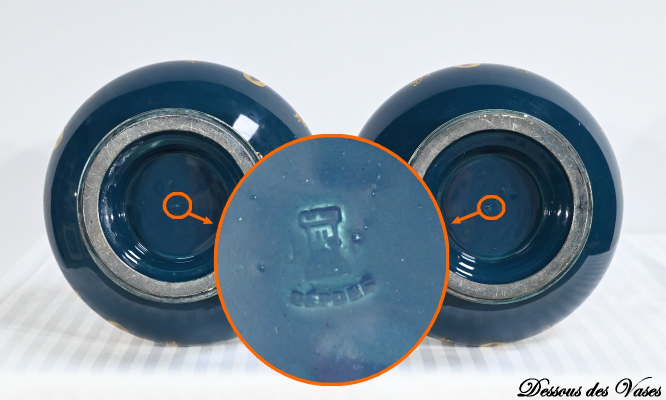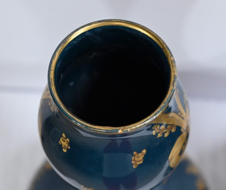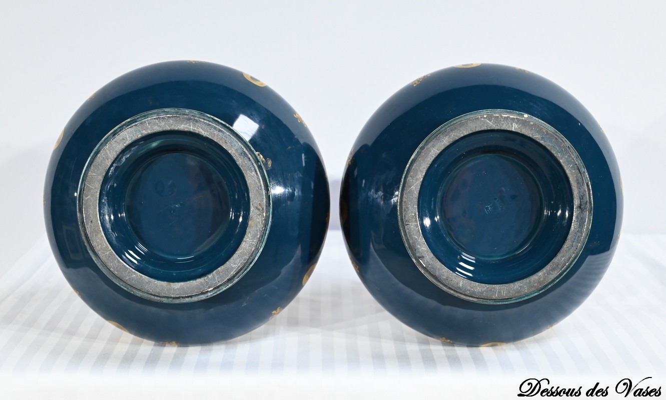 Gien, manufacture de renommée internationale, est réputée pour ses pièces d’orfèvrerie qui, durant 200 ans, n’ont cessé de passionner tant les collectionneurs que les amateurs. Cette paire de vases est le reflet de ce savoir faire.