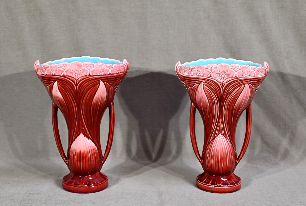 Paire de Vases en Faïence, estampillés Digoin Sarreguemines – Fin XIXe