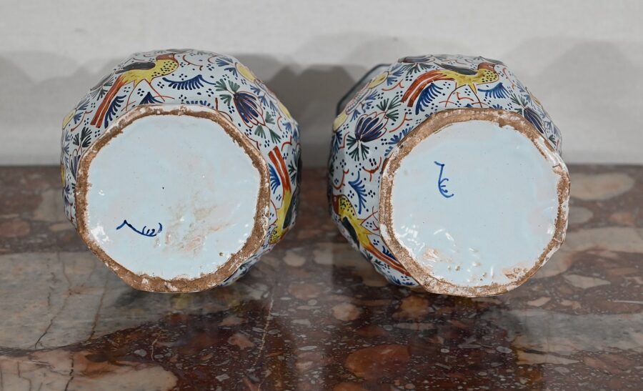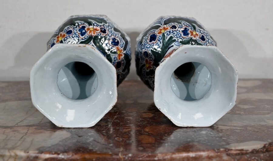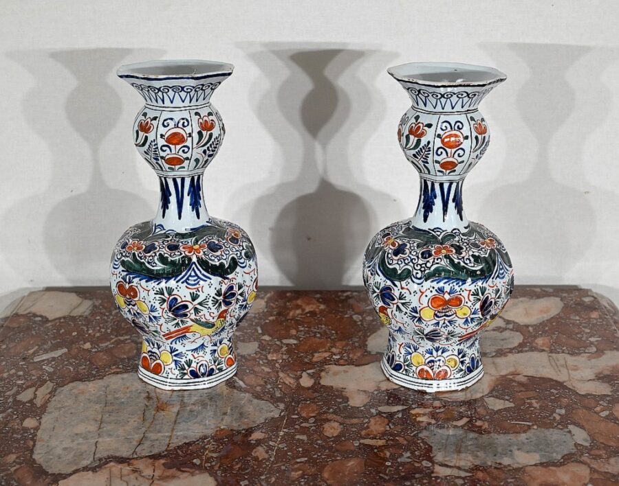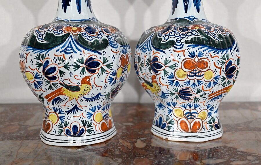 Signés au revers par un artisan de la faïencerie de Delft aux Pays-Bas, ces vases vous charmeront par leur forme originale et leurs couleurs lumineuses.