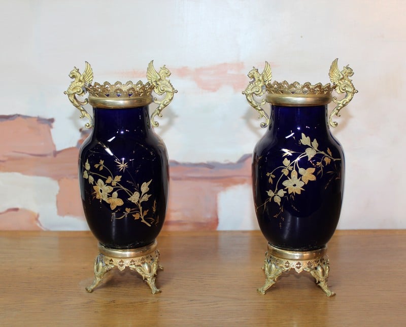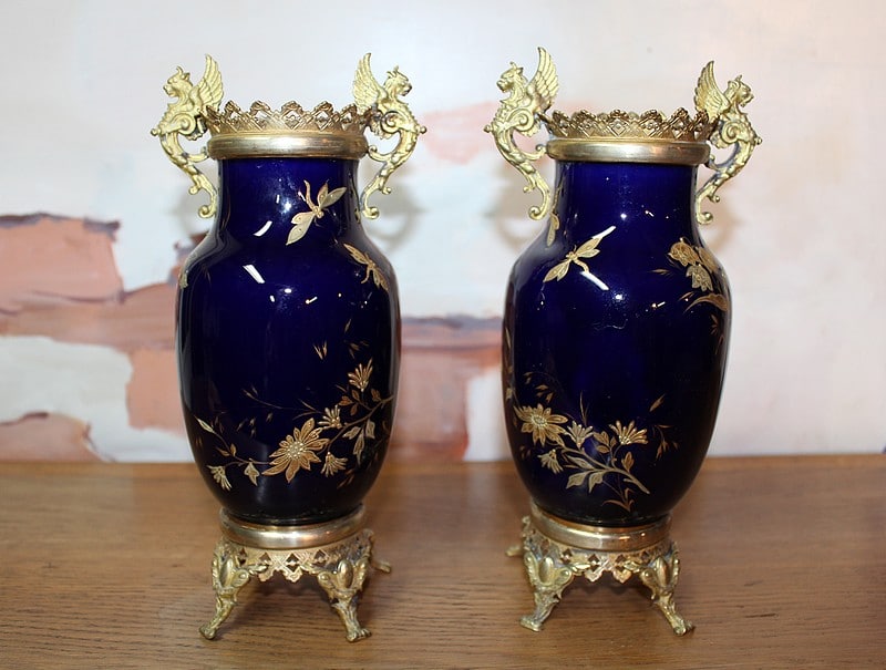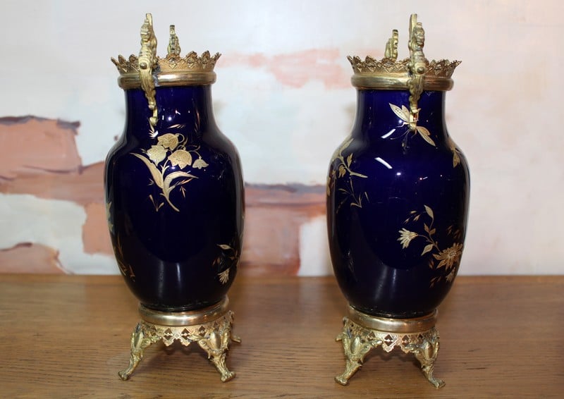 Paire de Vases en Porcelaine bleue Lunéville XIXe