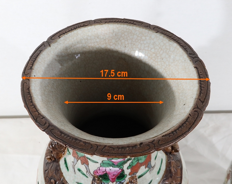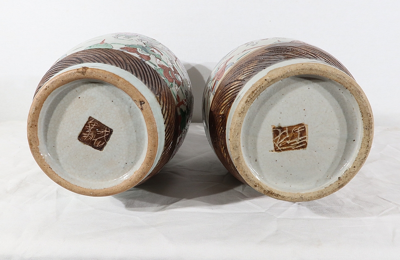 Signés en dessous, ces vases de Nankin sont riches en décors et ornementations, chers aux artistes chinois de la dynastie Qing.