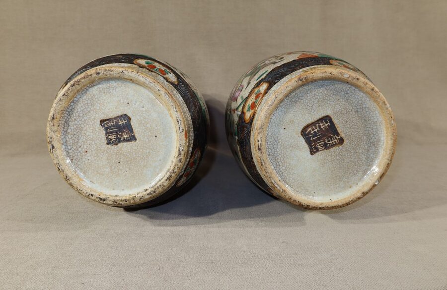 Estampillés sous chaque fond, ces vases de Nankin à l’émail craquelé plairont notamment pour leur authenticité et l’histoire qu’ils racontent.