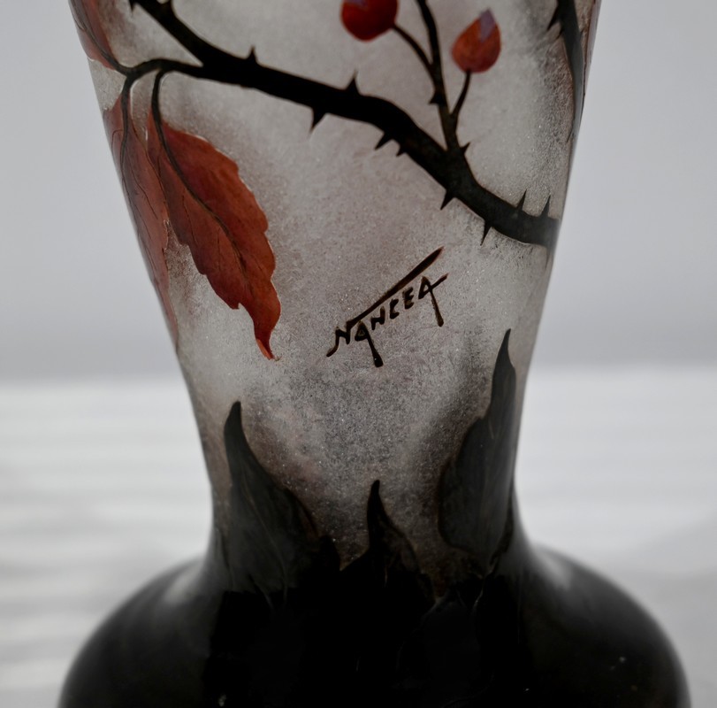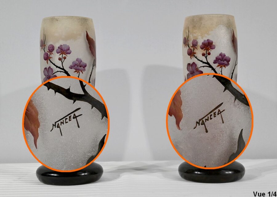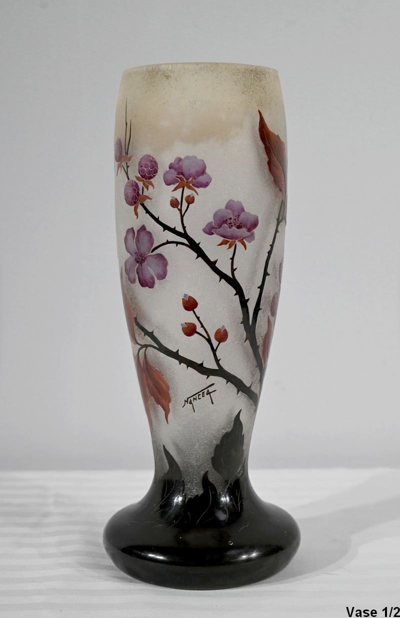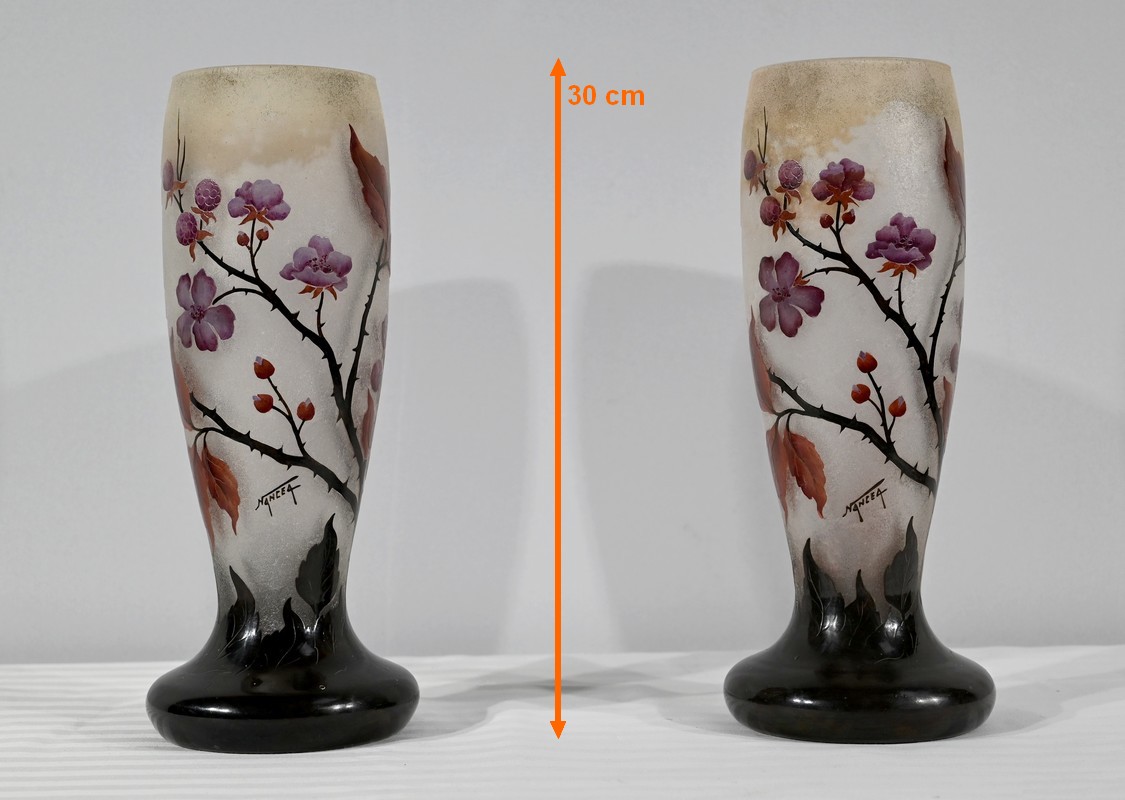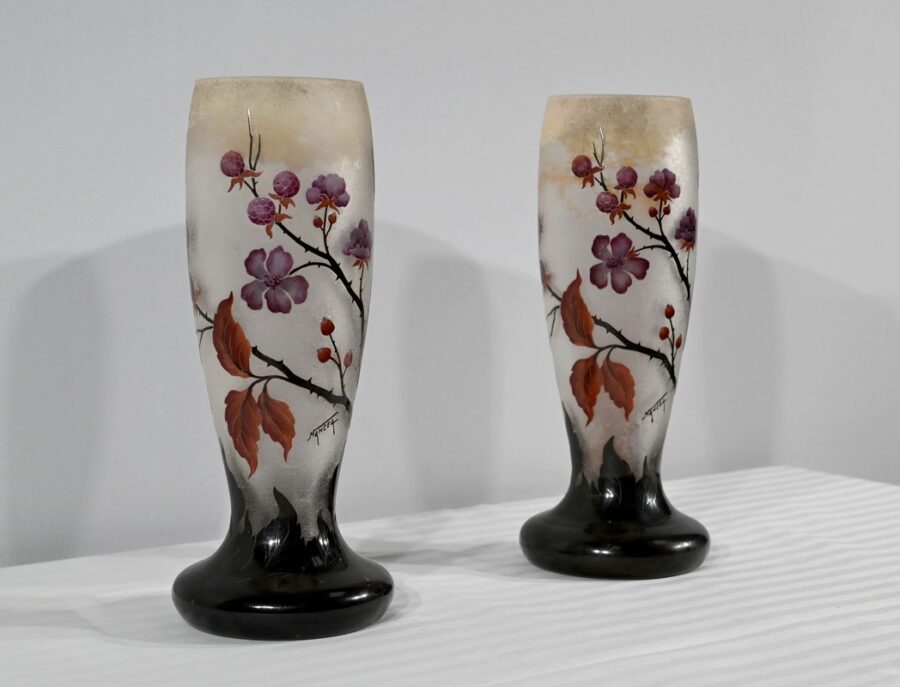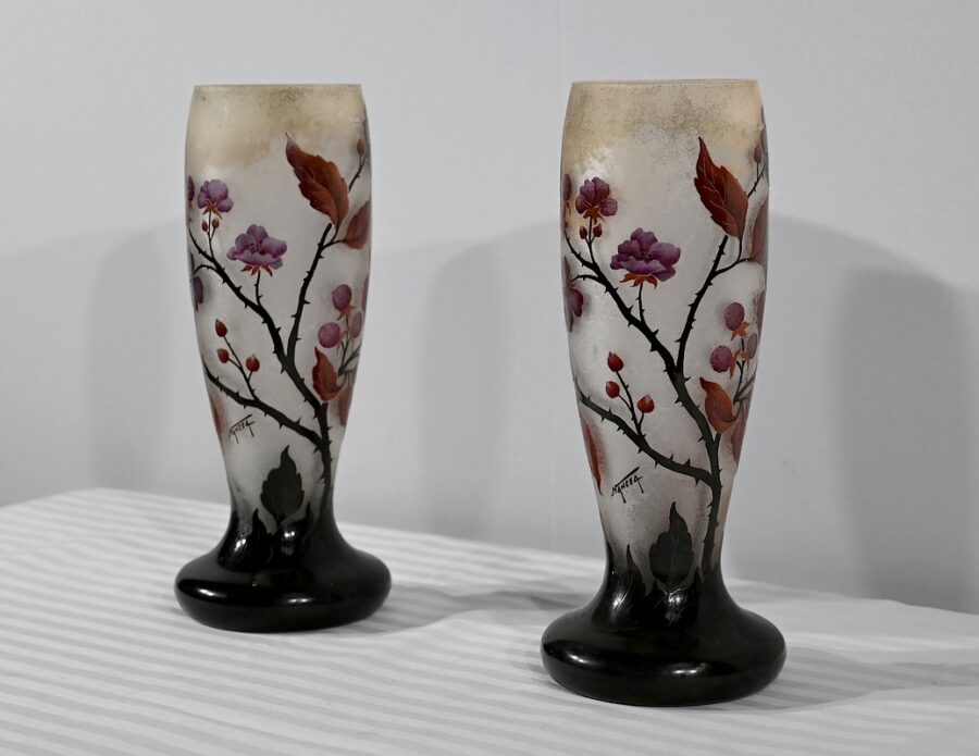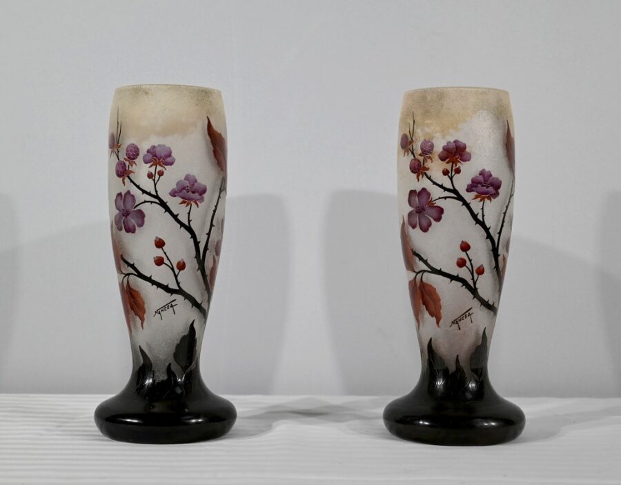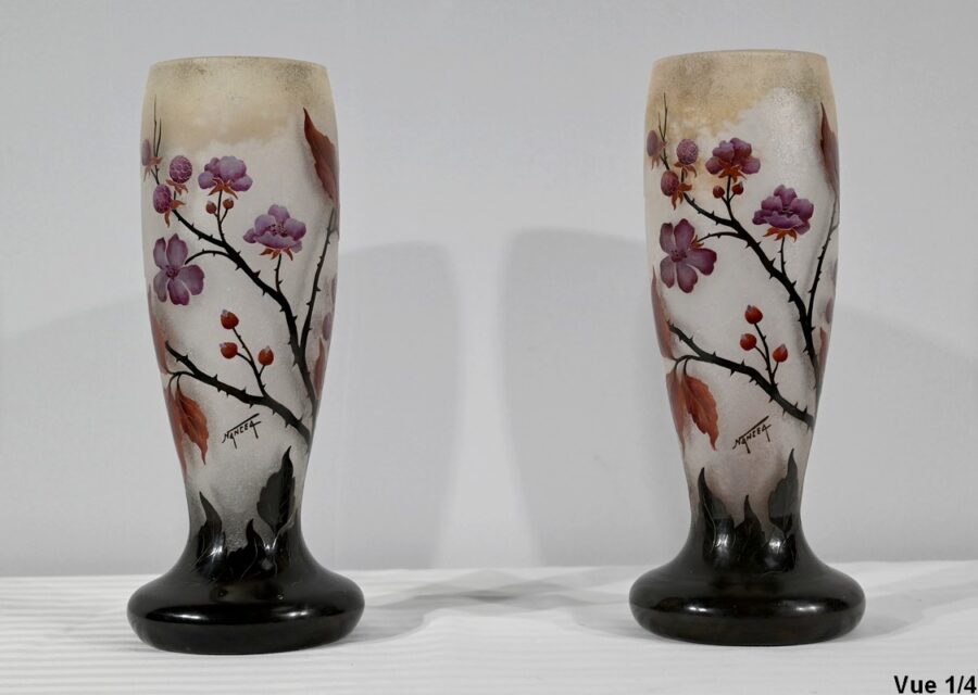 Paire de vases balustre Nancéa, en pâte de verre, datant des années 1910.