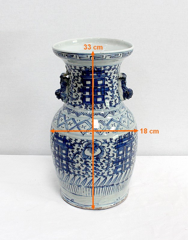 Cet objet décoratif bénéficie d’anses en forme de chiens de Fo et d’une panse ovoïde harmonieuse.