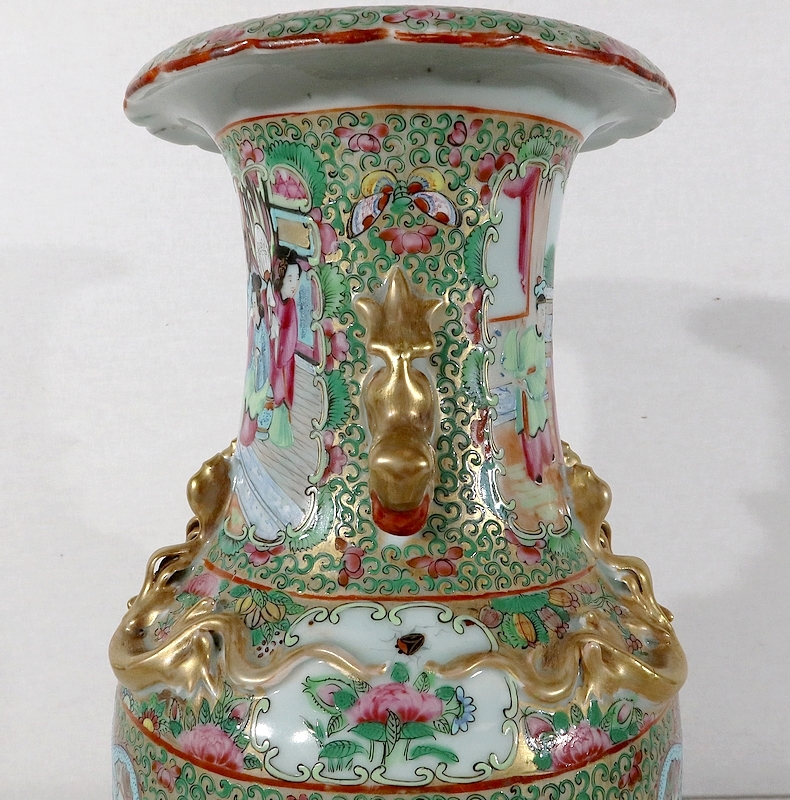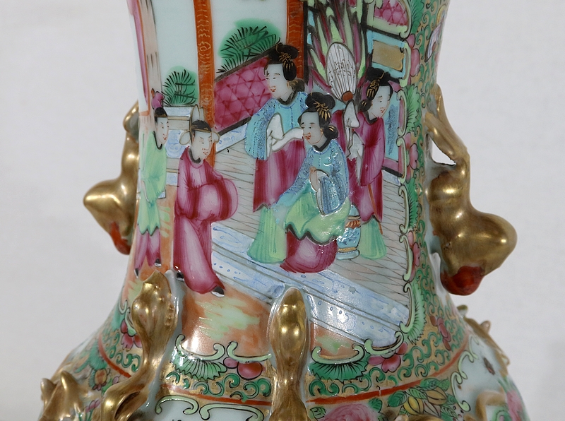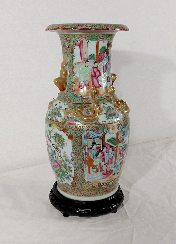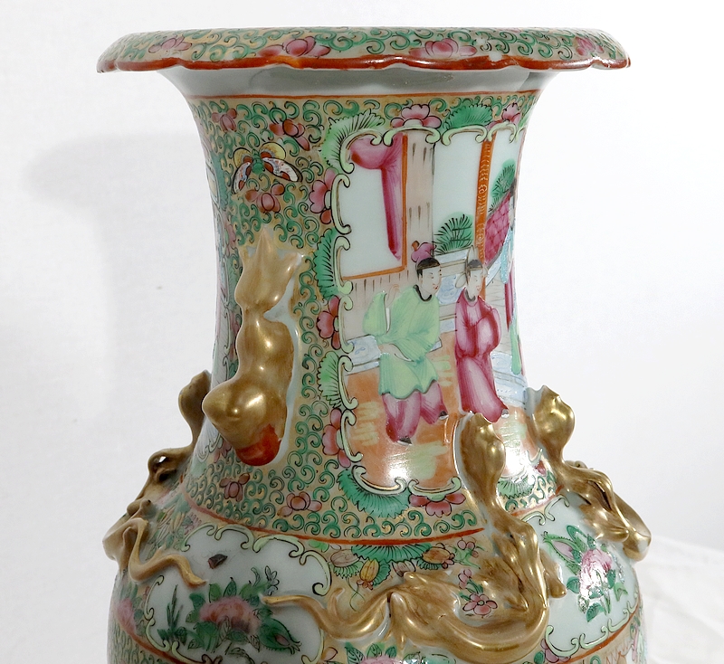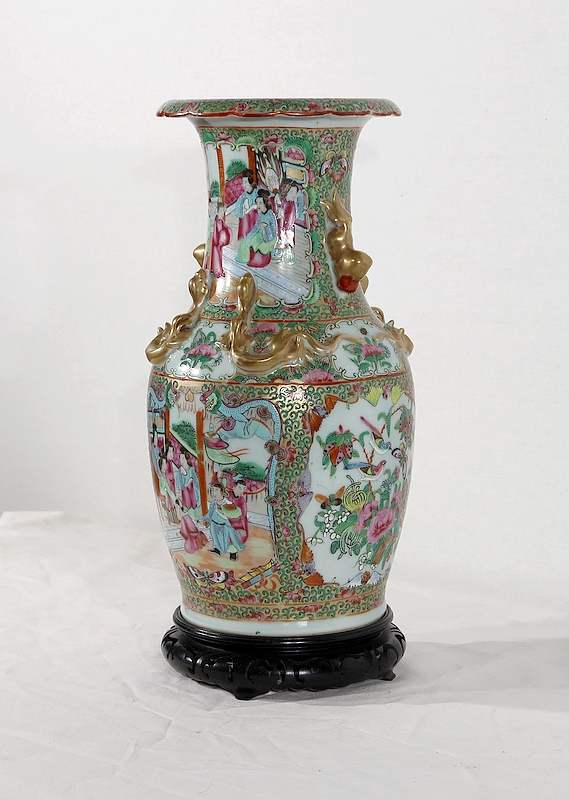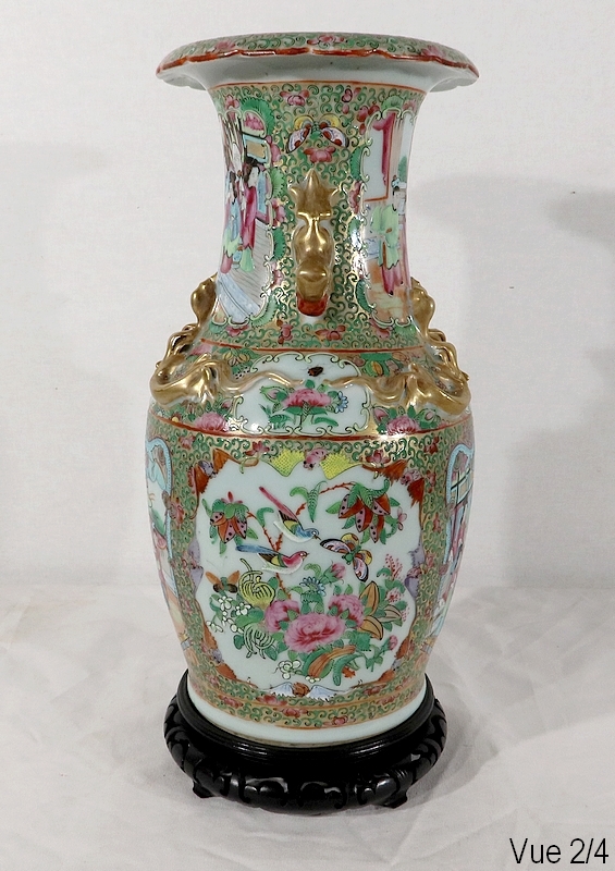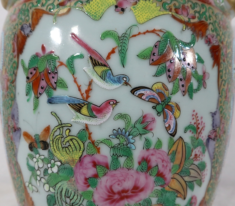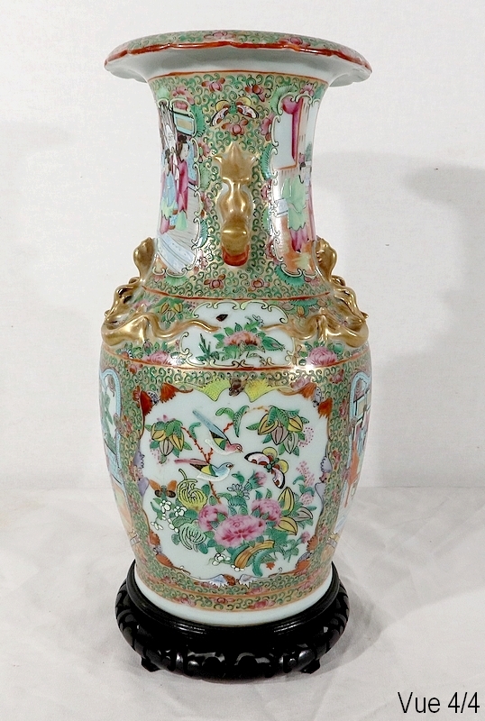 Avec son décor très gai et ses sculptures en relief rehaussées à l’or fin, ce vase cantonnais vous charmera par la poésie qui en émane.