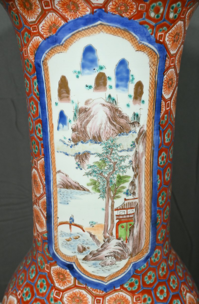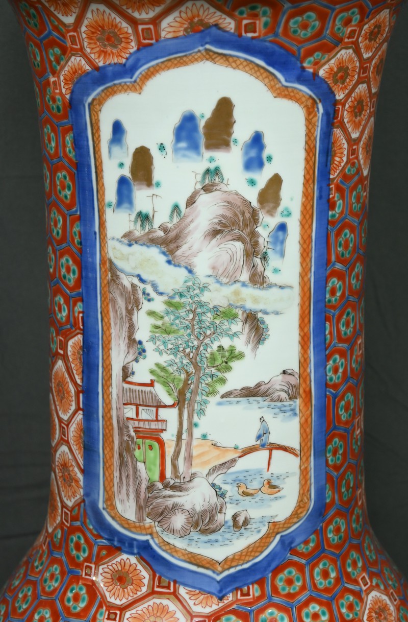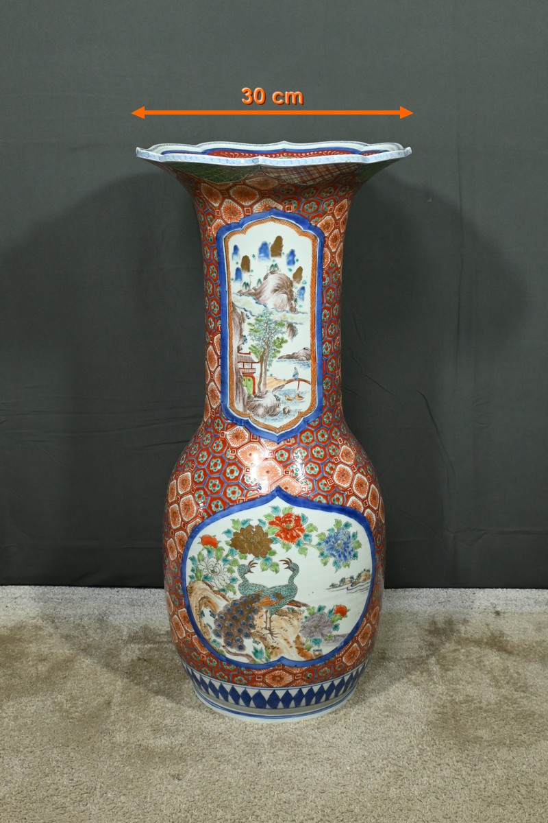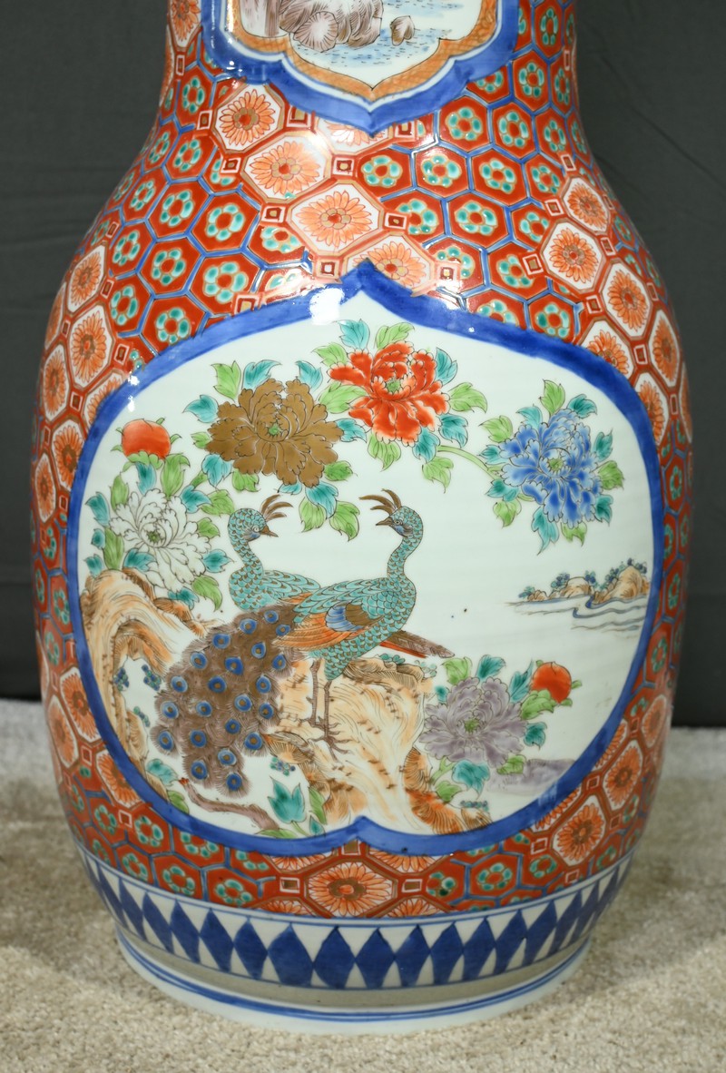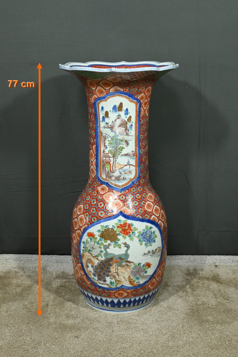 Ce grand vase en porcelaine polychrome, provenant du Japon et datant de l’époque Meiji (1868-1912), est une pièce remarquable qui illustre l’excellence artistique et technique de cette période.