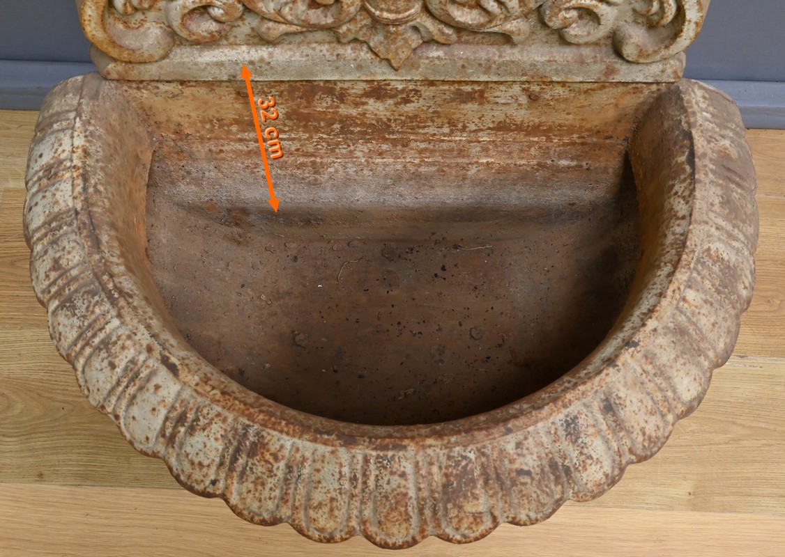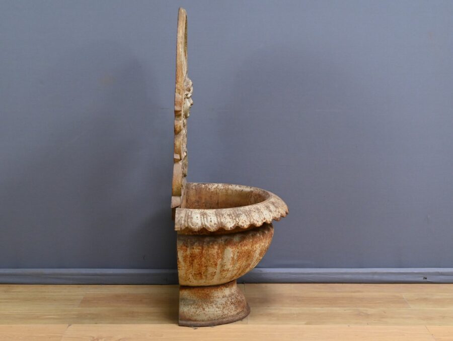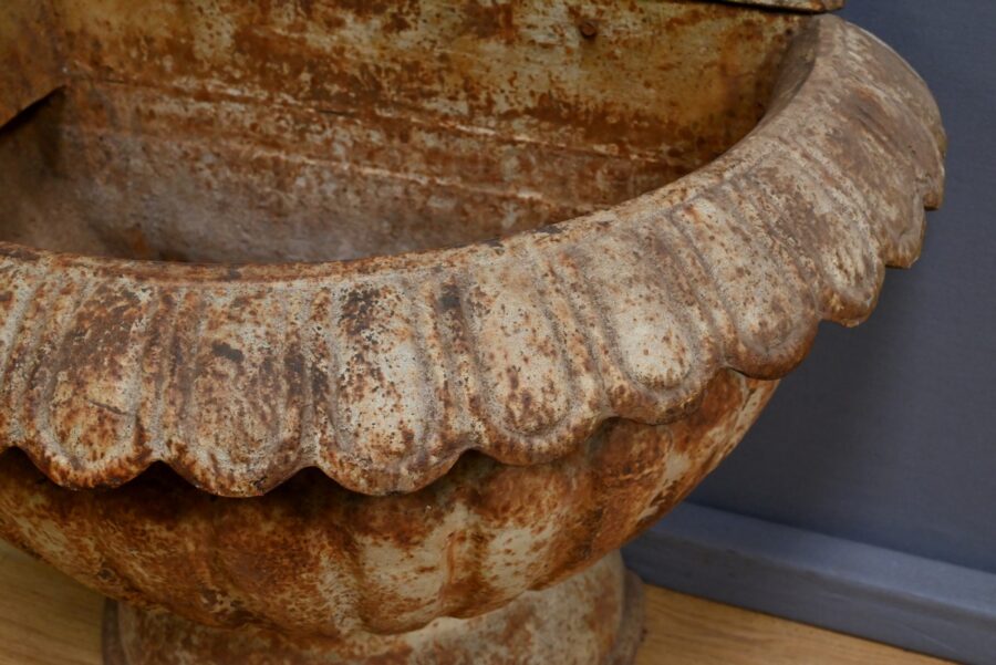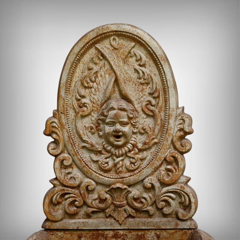 Cette fontaine en fonte, datant du début du XXe siècle, est un véritable témoignage du savoir-faire artisanal et du souci du détail qui caractérisait l’époque.