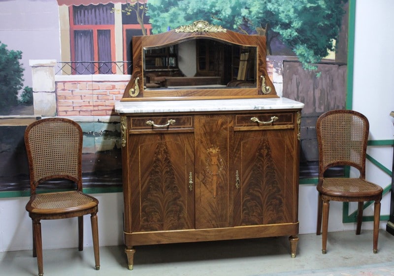 Depuis 50 ans, chaque pièce de mobilier est minutieusement restaurée avec passion dans notre atelier d’ébénisterie.