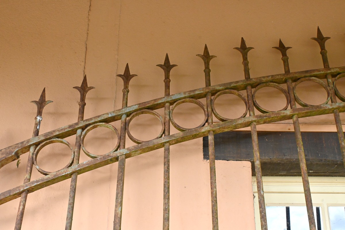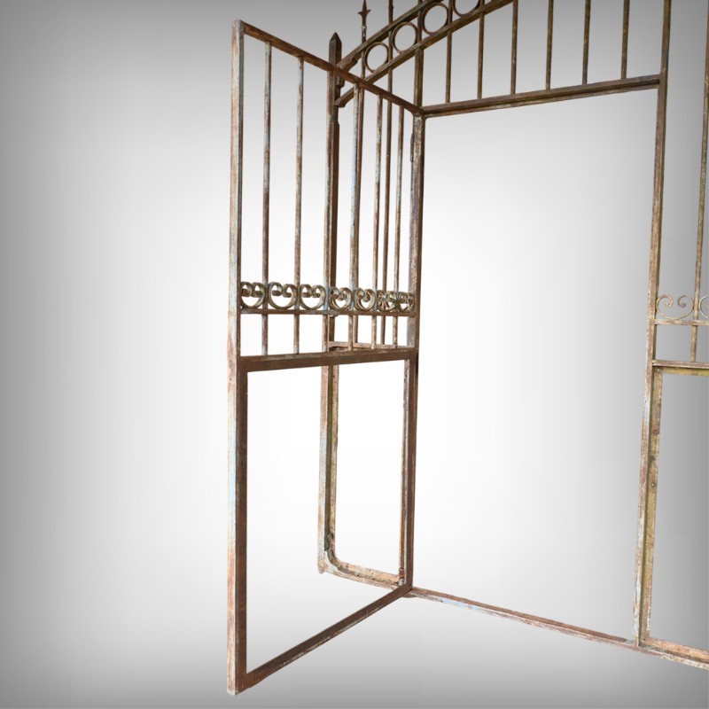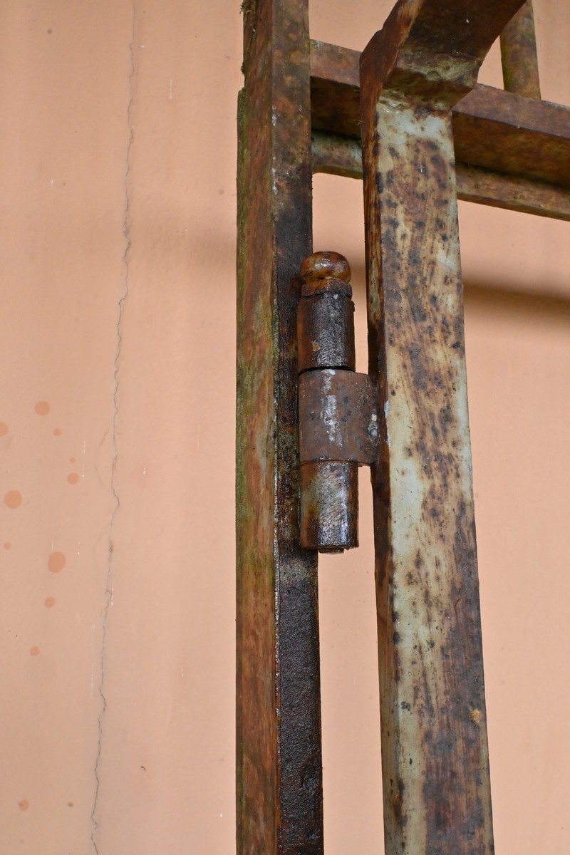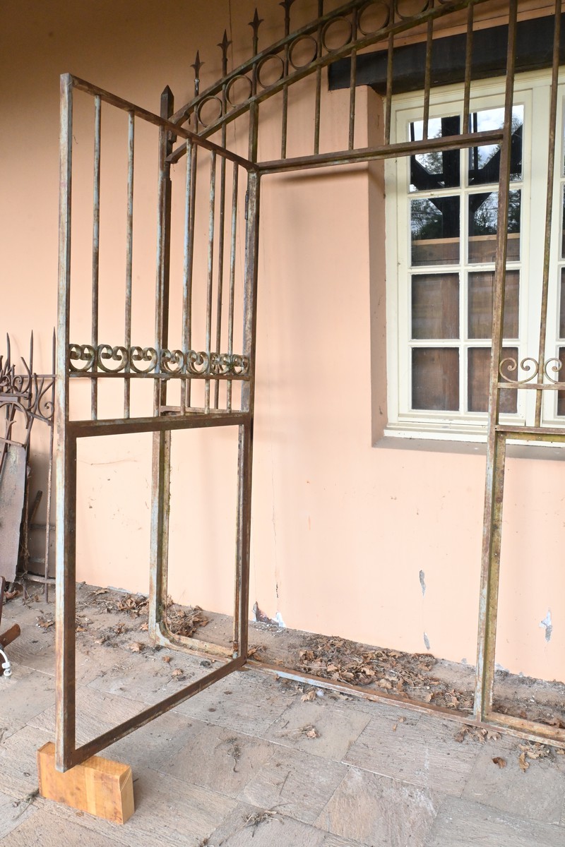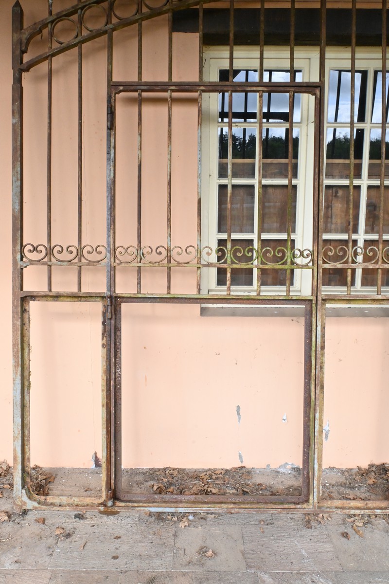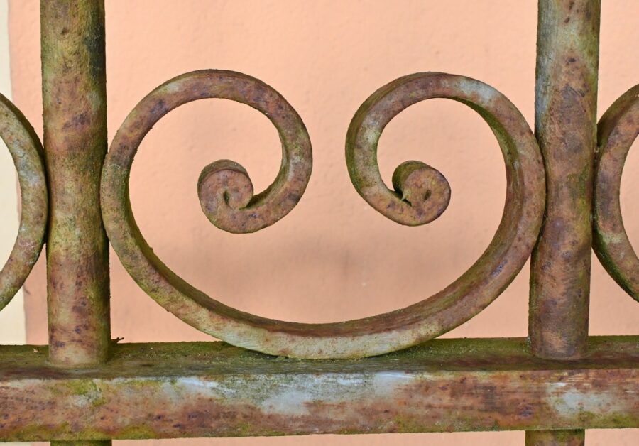 Ce portail en fer à deux vantaux, datant de la première moitié du XIXe siècle, incarne à la fois la robustesse et l’élégance caractéristiques de l’artisanat de l’époque.