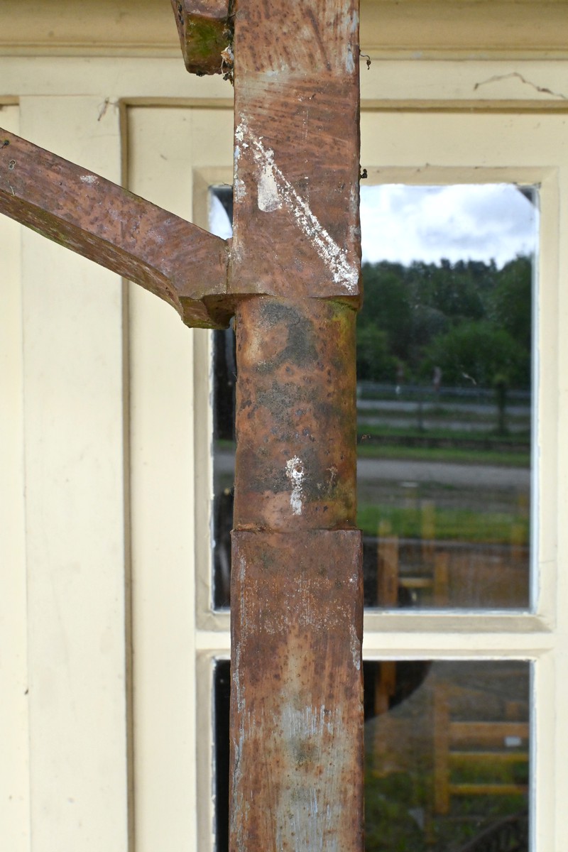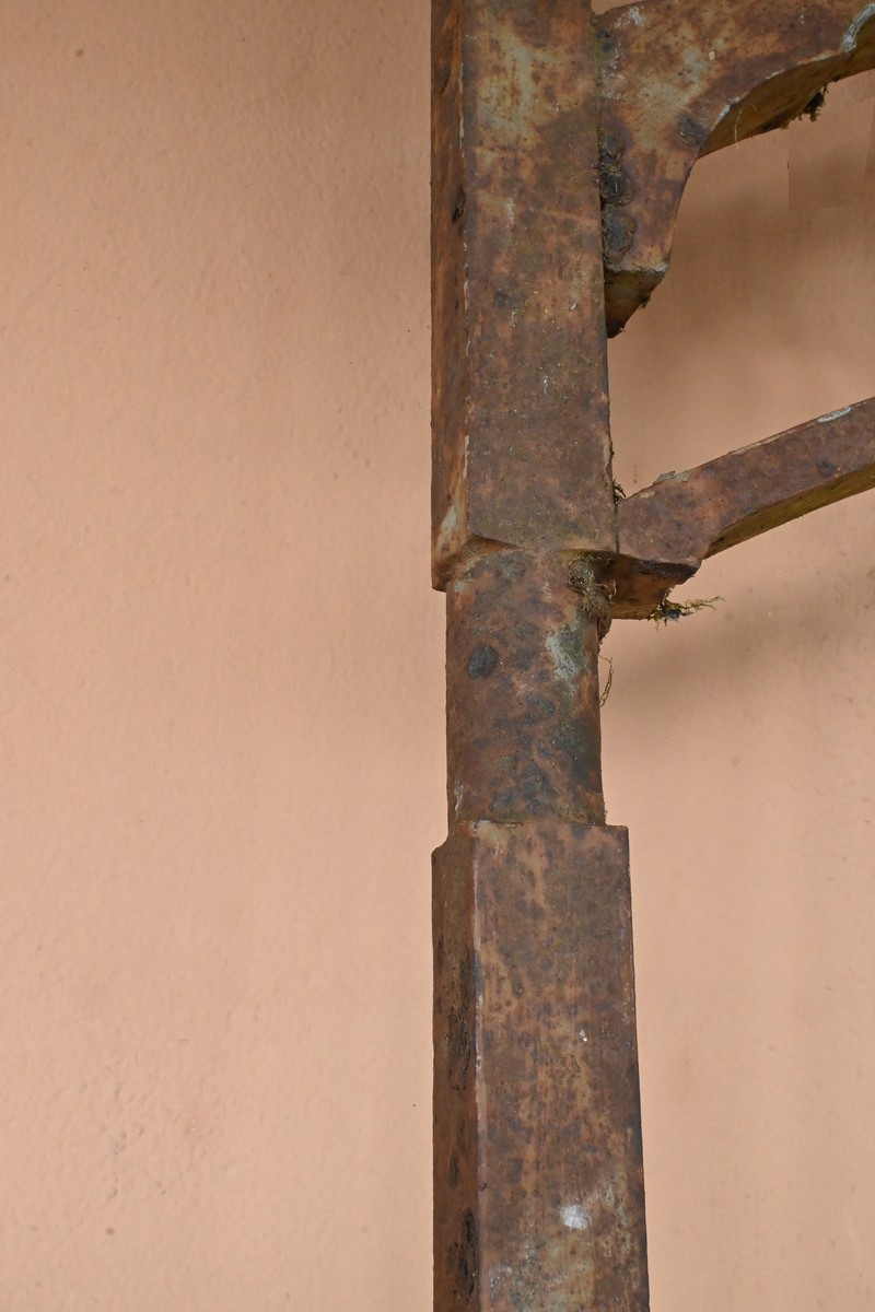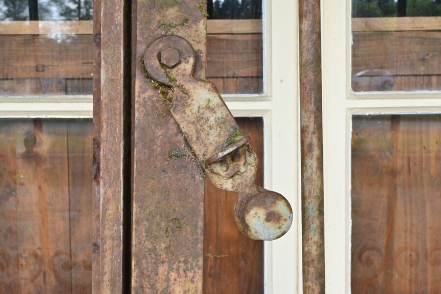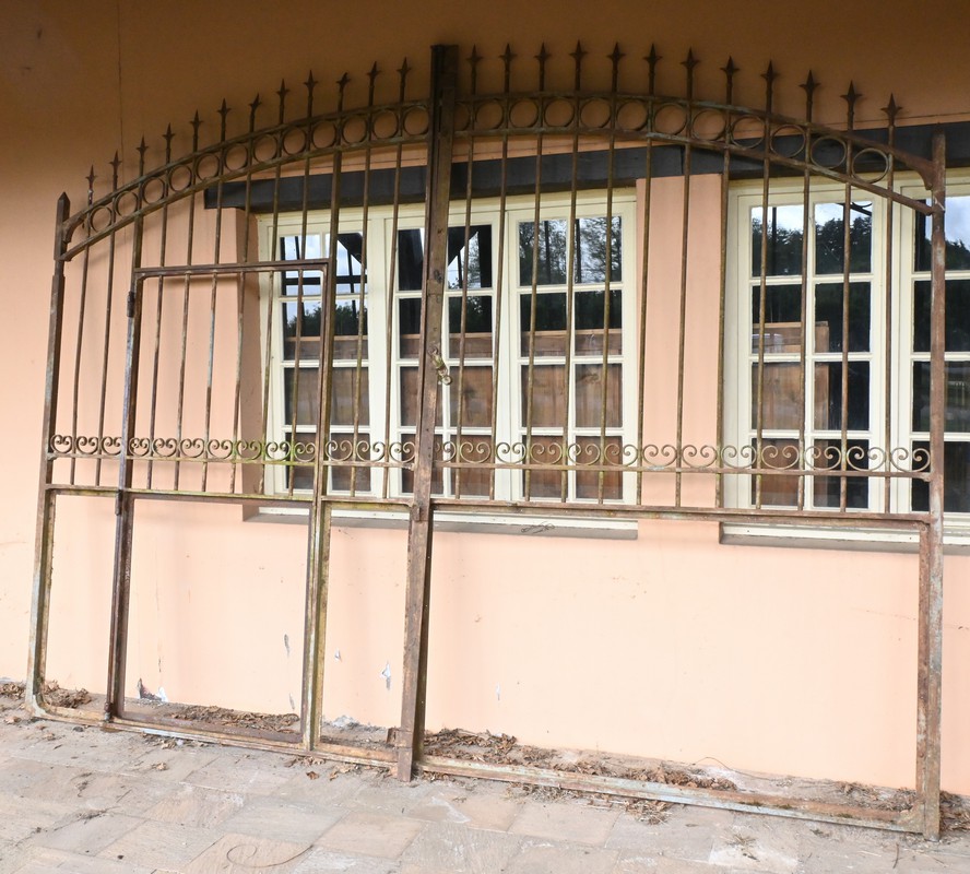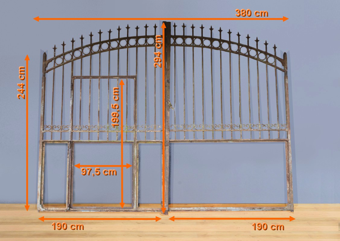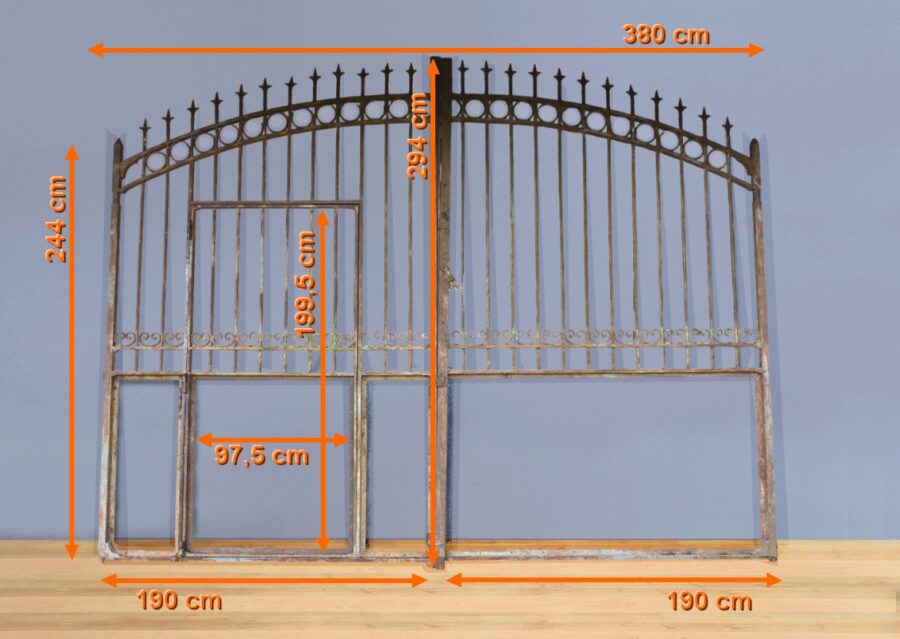 Ce portail en fer à deux vantaux, datant de la première moitié du XIXe siècle, incarne à la fois la robustesse et l’élégance caractéristiques de l’artisanat de l’époque.